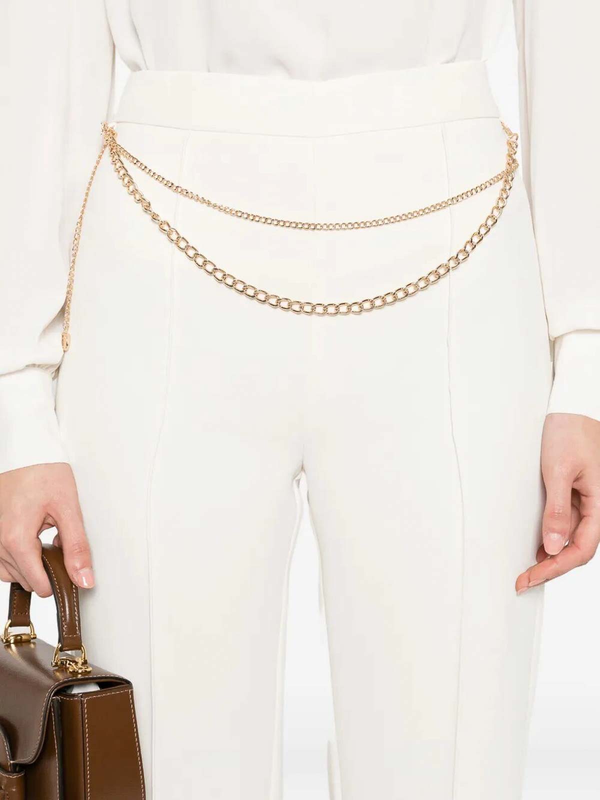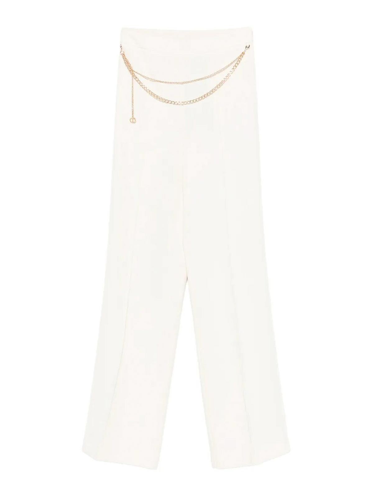 Damenhose aus fließendem und bequemem Stoff, der sich durch eine klare und feminine Linie auszeichnet. Die Perlmuttfarbe verleiht Helligkeit und macht das Modell vielseitig für verschiedene Kombinationen.