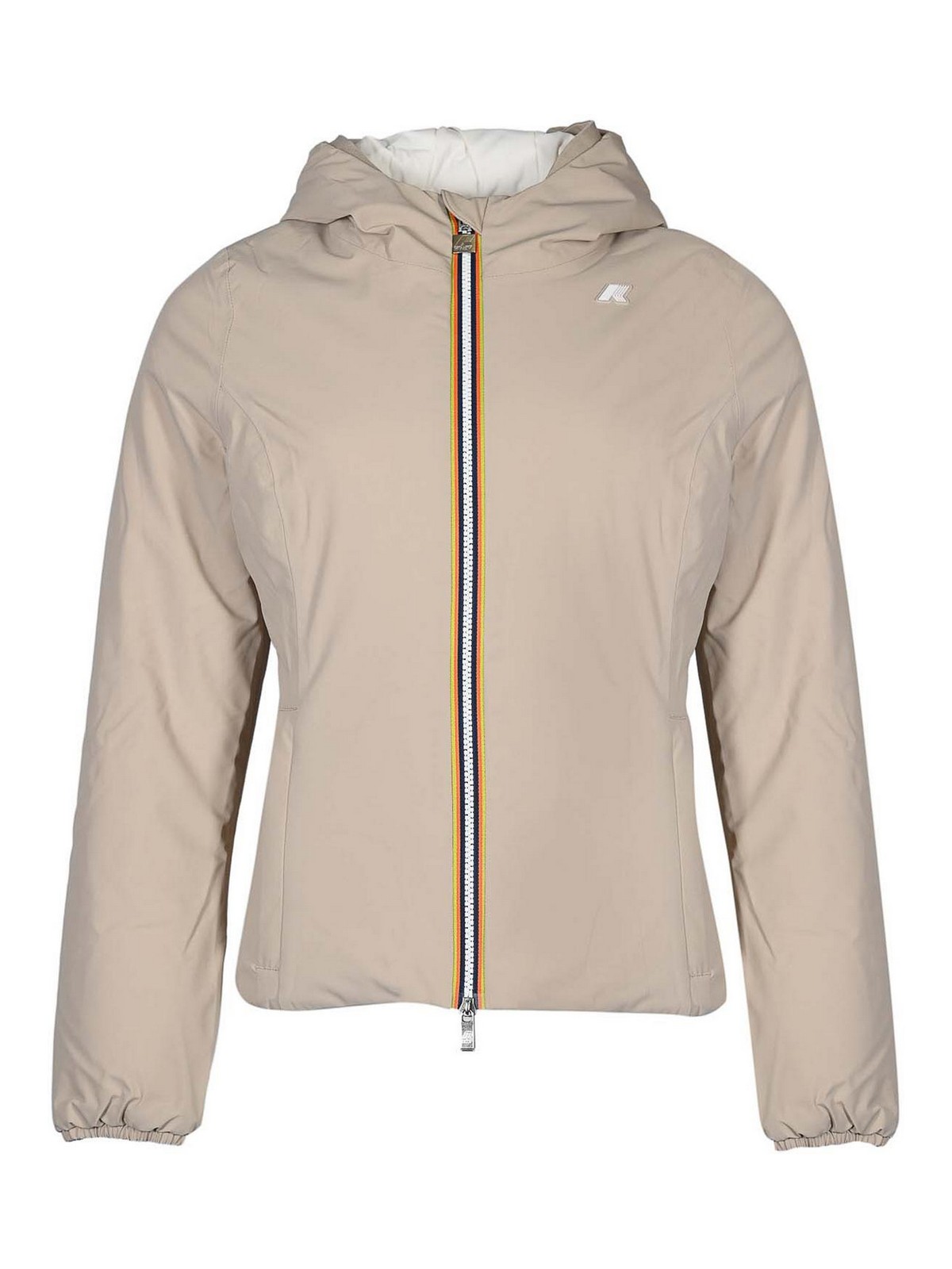 Technische Langarm, verstellbare Kapuze, doppelter Schieberreißverschluss, Wendetaschen, Logo auf der linken Brust, gepolsterte, schmale Passform