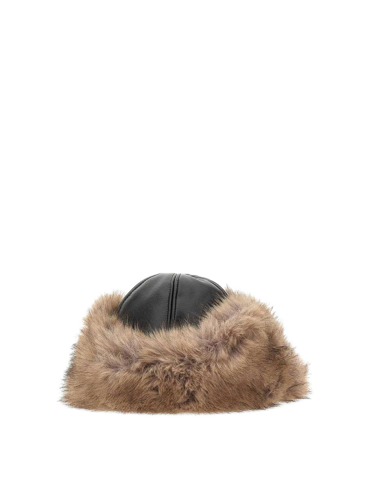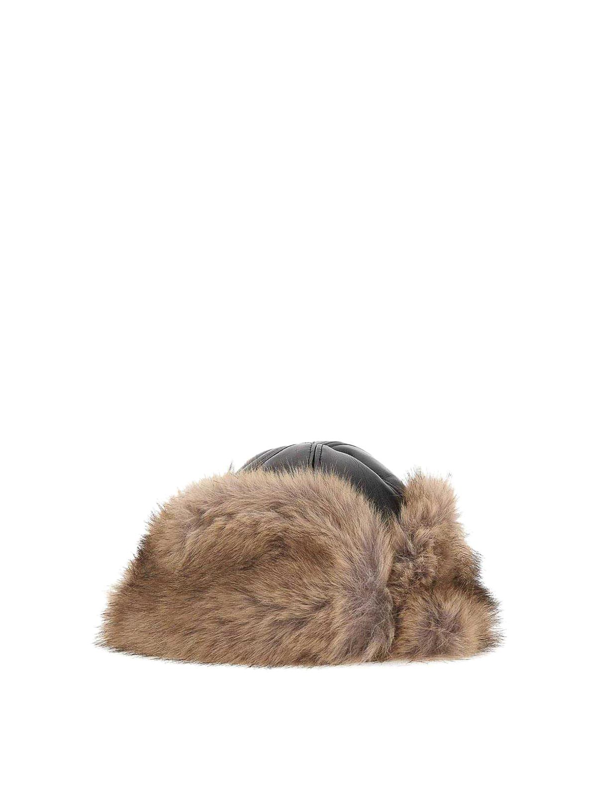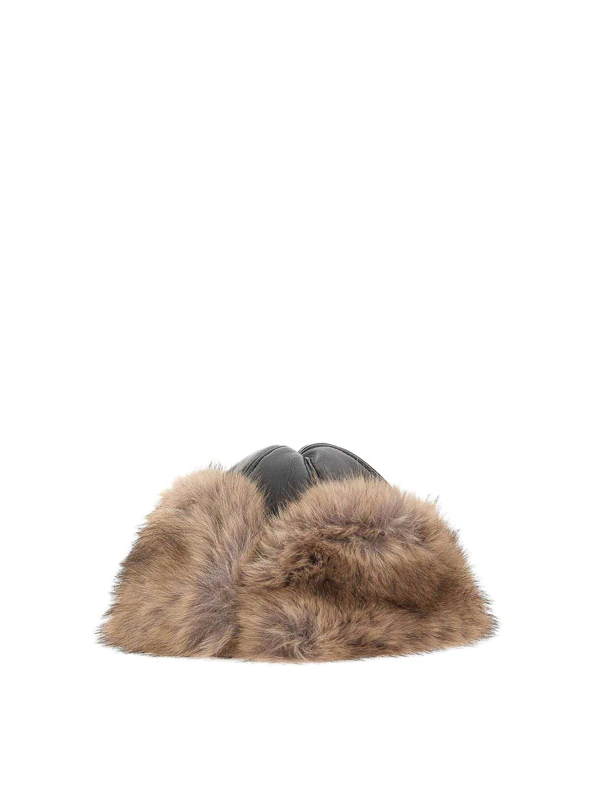 Schwarz/braunes Kunstleder mit Kunstpelzbesatz