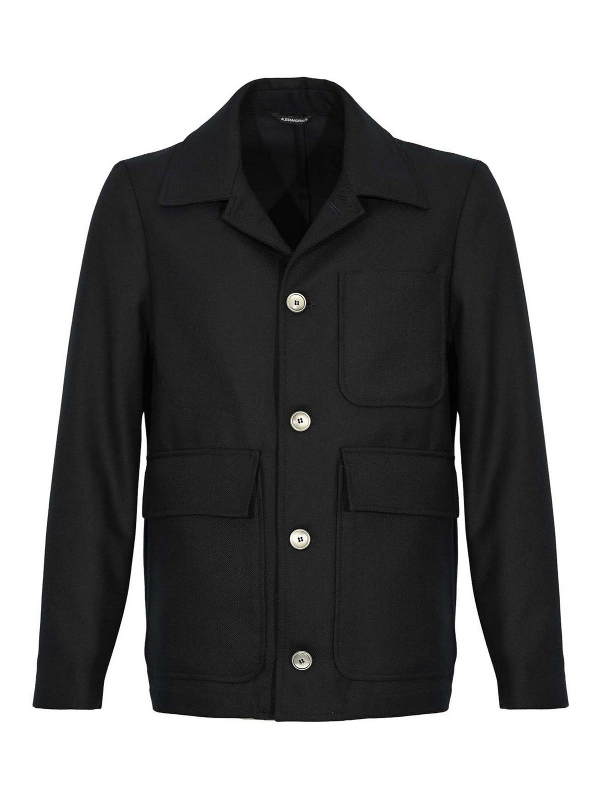 Wollmischjacke Daniele Alessandrini Material: Wollmischung Muster: einfarbig marineblau Ärmel: lang mit zwei Knöpfen Manschetten Kragen: klassisches Revers mit Frontöffnung Verschluss: Vordertaschen mit vier Knöpfen: zwei Fronttaschen mit Pattentaschen und eine Brusttasche Details: minimalistisches und modernes Design, Perlmuttknöpfe, farblich abgestimmte Nähte, gerader Saum gefüttert: ja Passform: normal