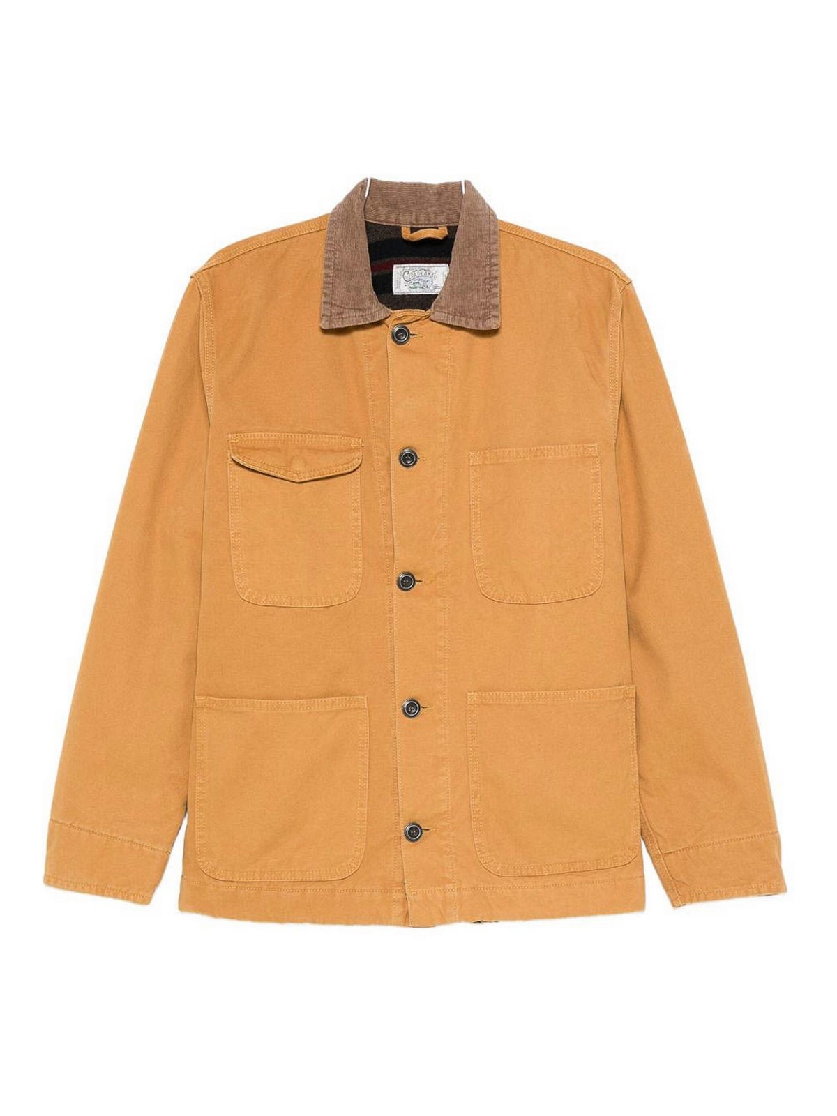 Brauner Cordkragen, Brusttaschen mit Knopfverschluss, zwei aufgesetzte Fronttaschen, lange Ärmel