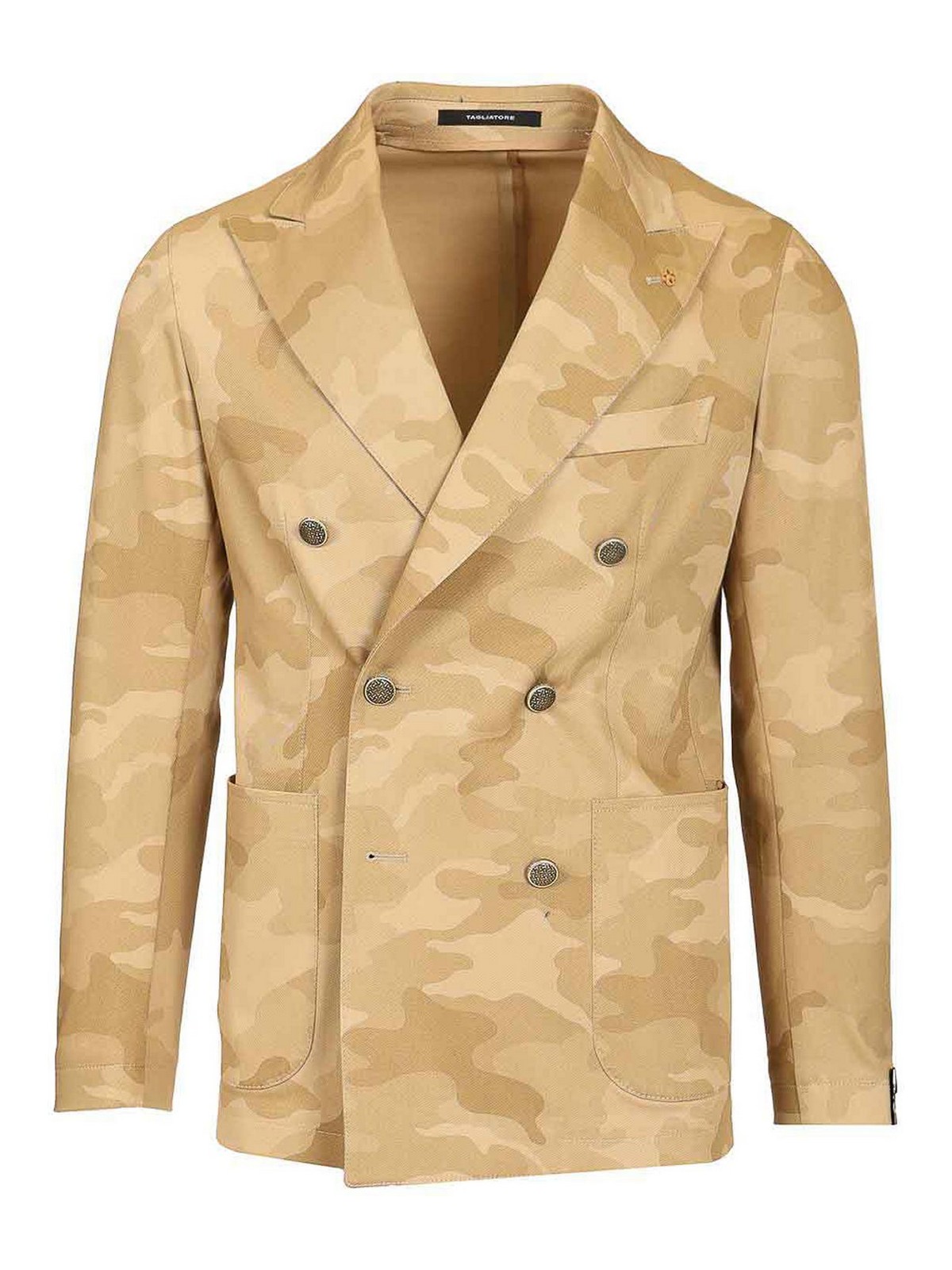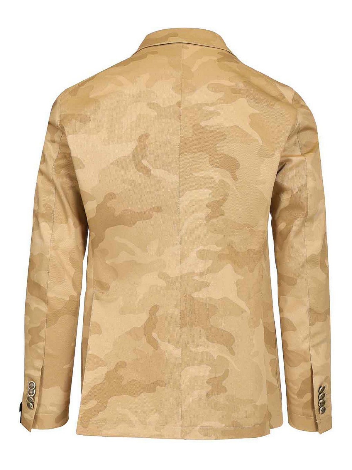 Zweireihige Tarnjacke ohne Innenfutter mit aufgesetzten Taschen, Metallknöpfen und doppeltem Rückenschlitz