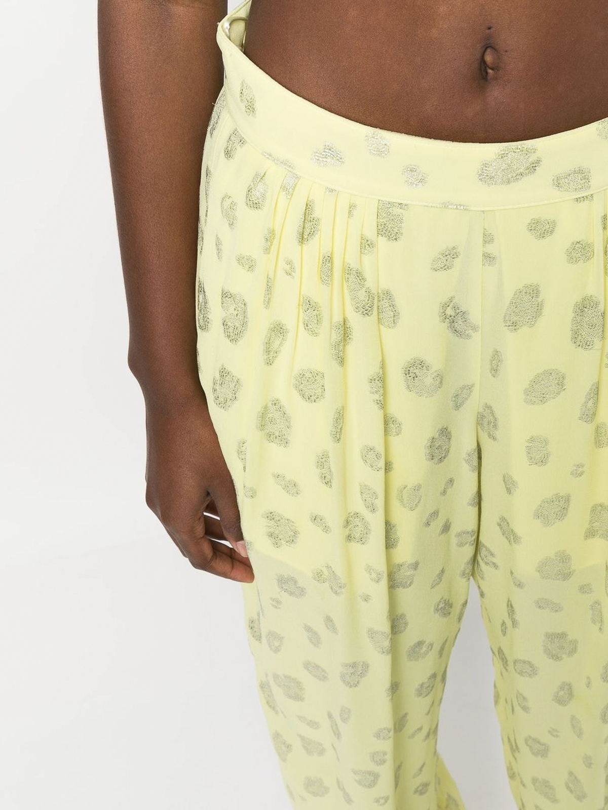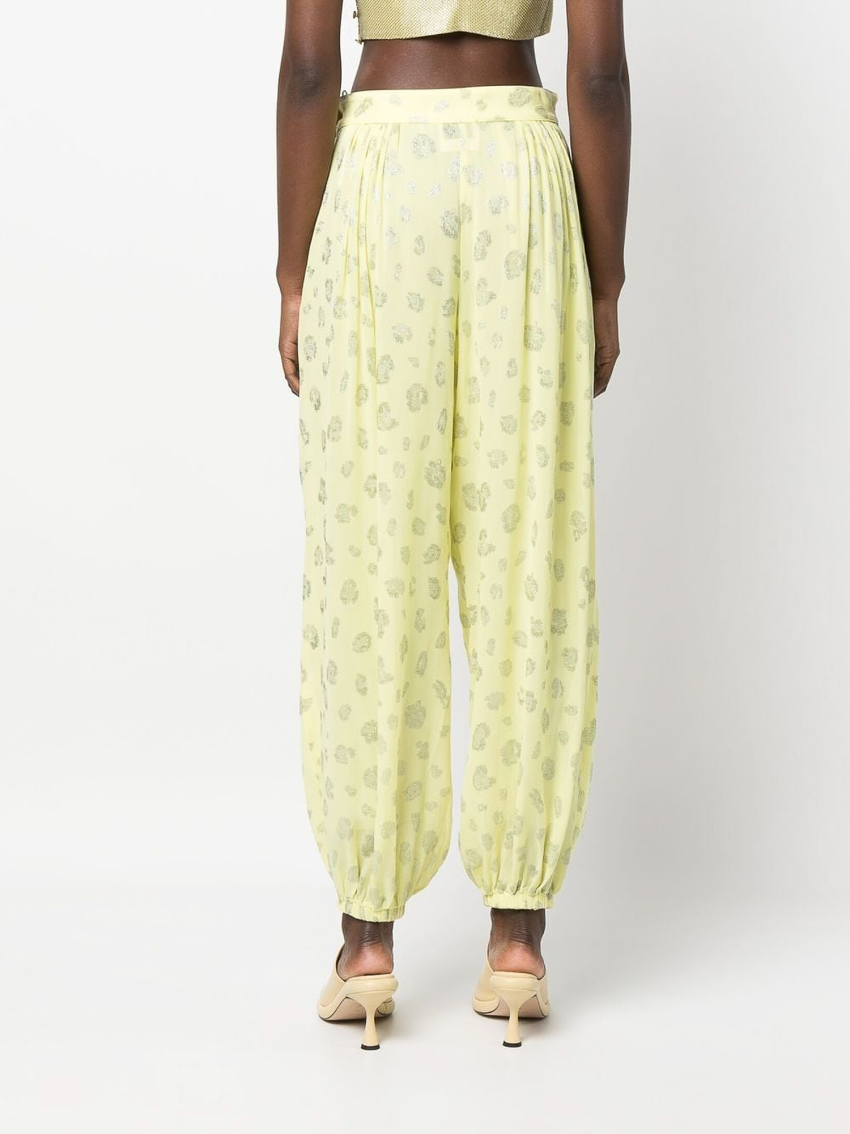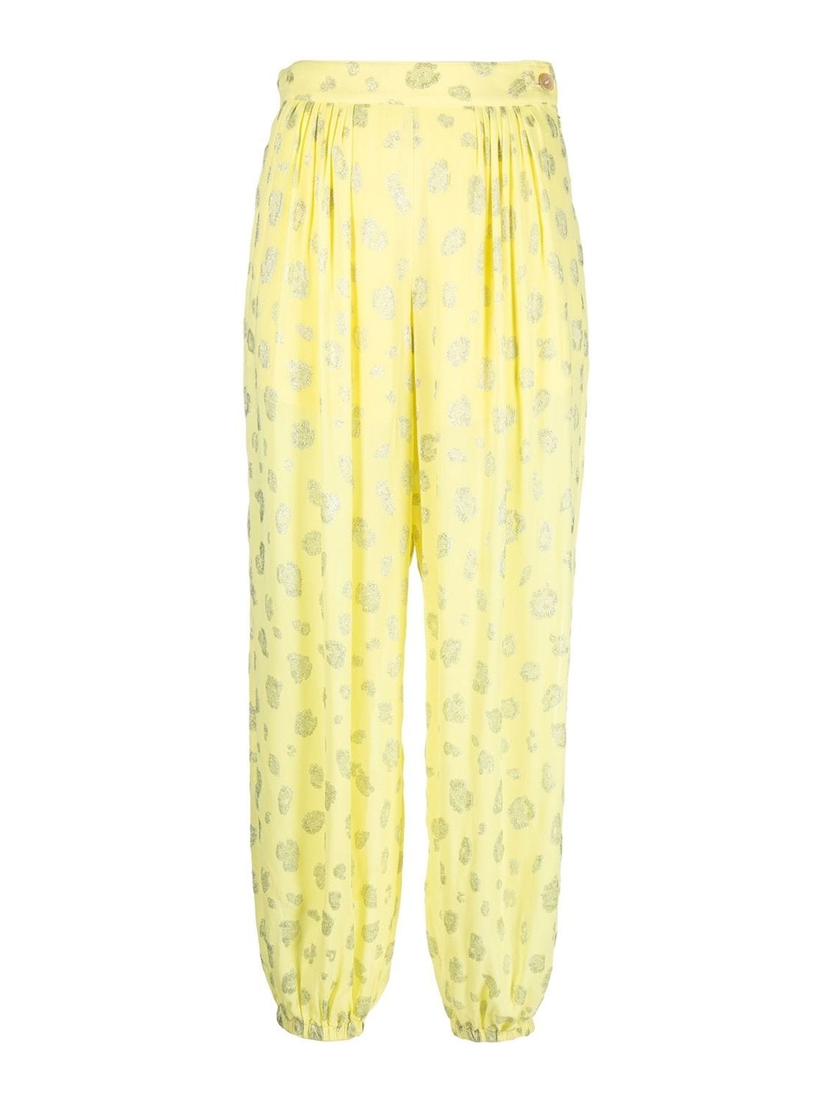 Bestickte Haremshose von Forte Forte mit hellgelben metallischen Fäden, gesticktem Design, Faltendetails, hoher Taille, seitlichem Knopf- und Reißverschluss und elastischen Knöcheln in italienischer/römischer Größe
