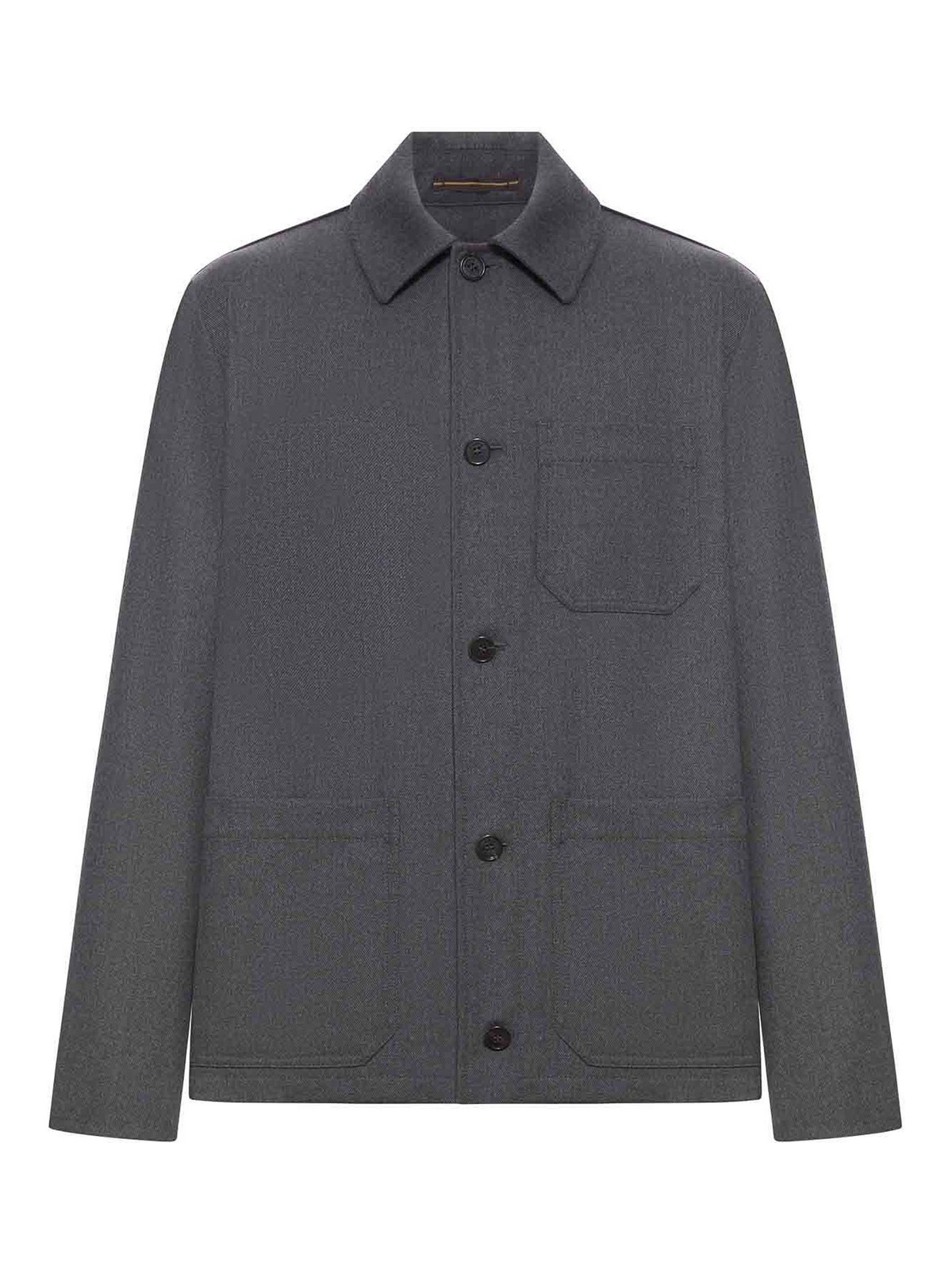 Woll-Überhemd, Knopf, klassischer Kragen, aufgesetzte Taschen, lange Ärmel, geknöpfte Manschetten, grau