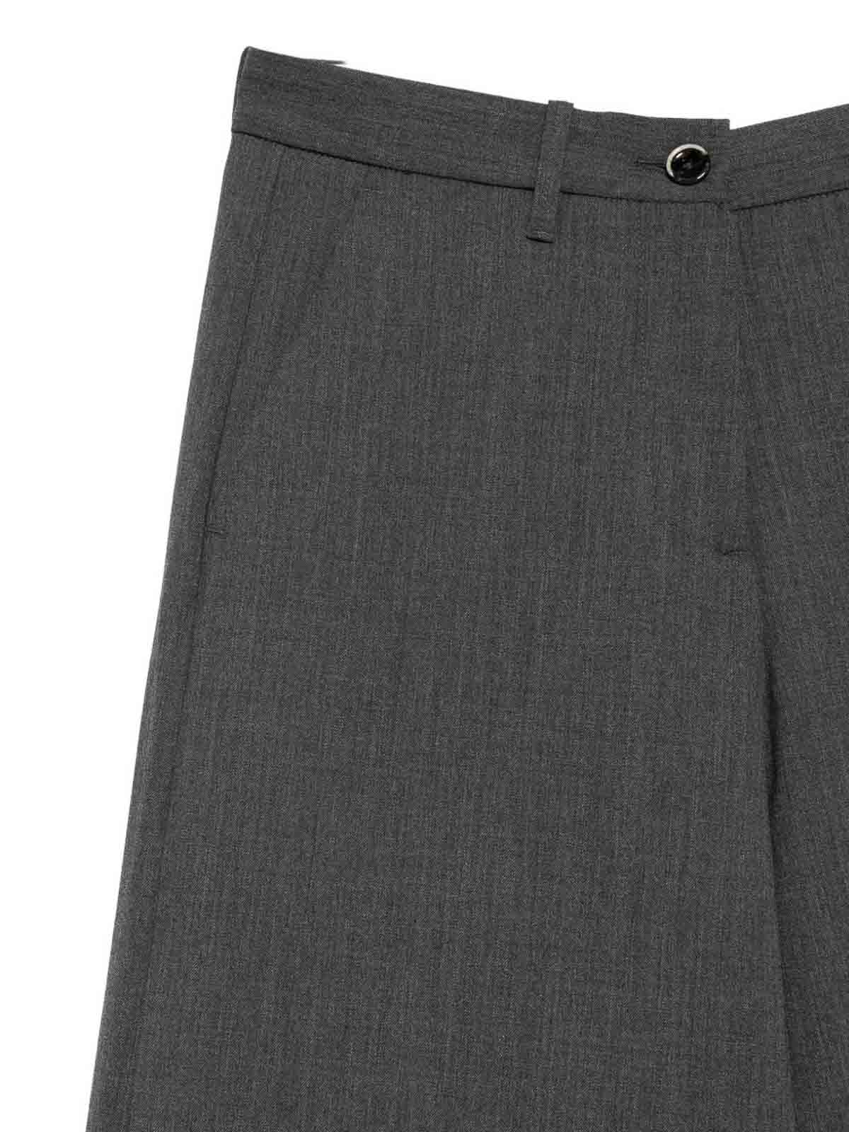 Graue Leistentaschen, Gürtelschlaufen, verdeckter Verschluss, weites Bein, hohe Taille