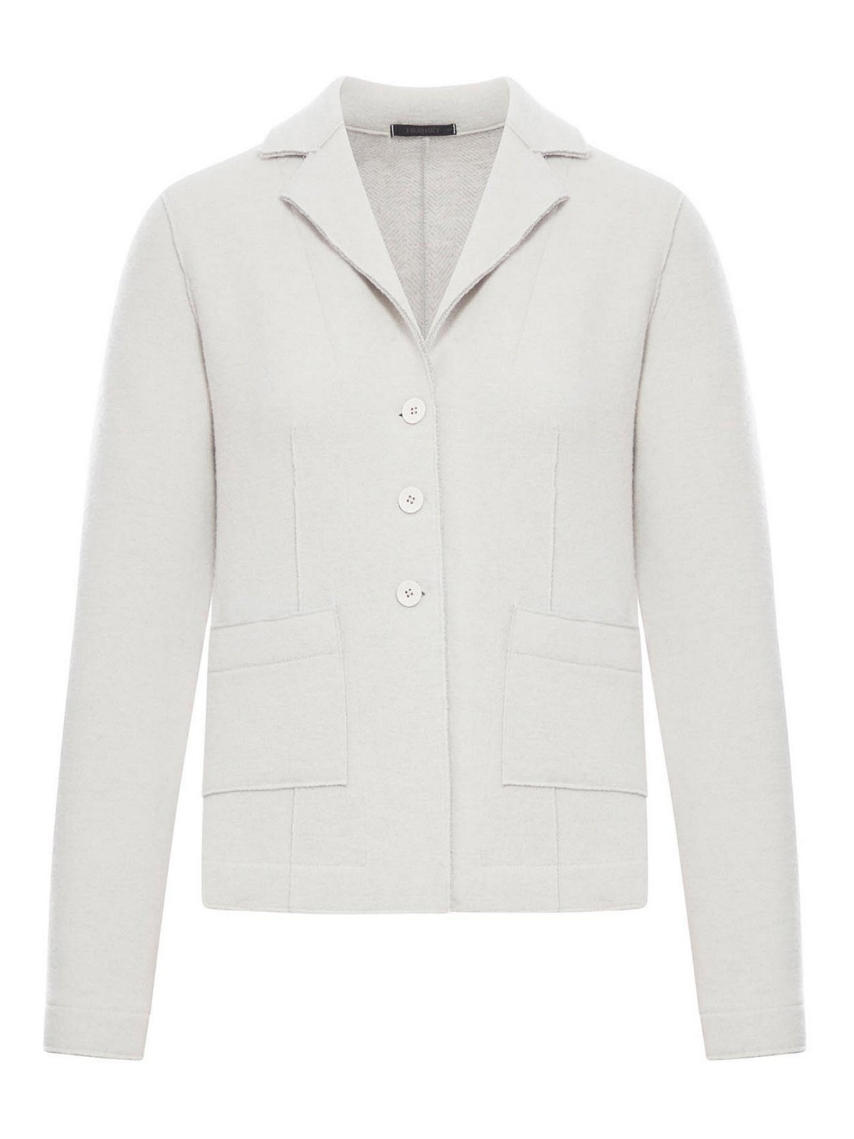 Ungefütterte Jacke- taillierte Passform- Fischgrätmuster auf einer Seite- Reverskragen- und Gesäßfalten- zwei aufgesetzte Taschen- Ziernähte an allen Nähten- Grau/Fischgrätmuster