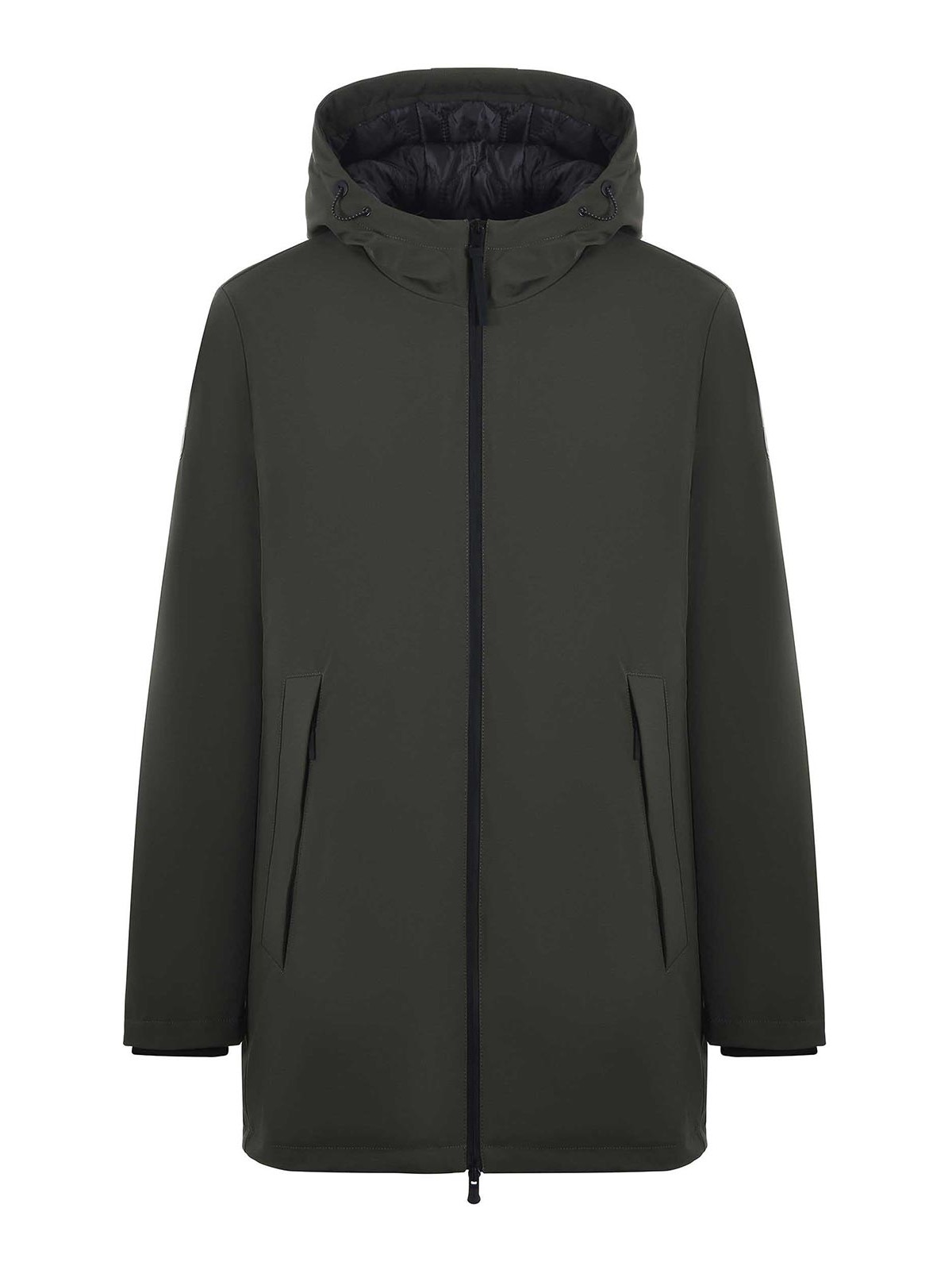 People of Shibuya Jacke aus technischem Material. Technische Polsterung. Kapuze mit Kordelzug. Taschen mit Reißverschluss. Innentaschen. Lycra-Manschetten. Doppelschieber-Reißverschluss. Abgebildete Größe: 50 Füllung aus 100% Polyester: 100% Polyester