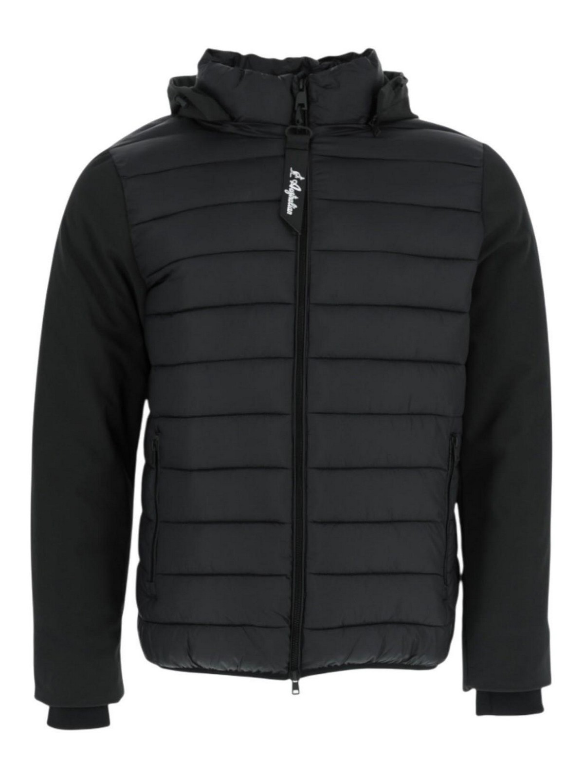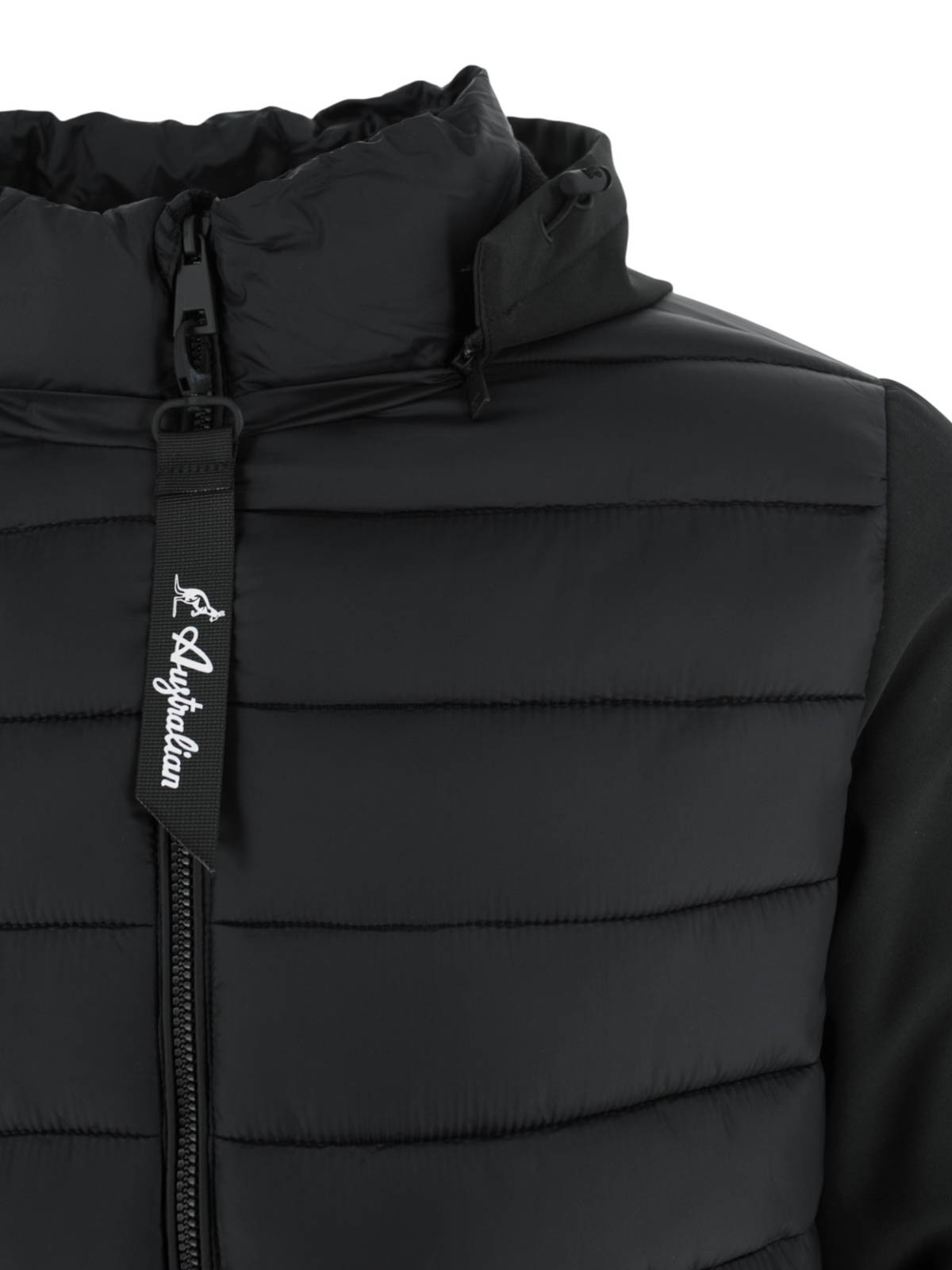 Australische Bi-Material-Softshell- und Nylon-D-Jacke Bi-Material-Jacke aus Softshell und Denier-Nylon entworfen, um Wärme, Leichtigkeit und maximalen Komfort zu garantieren. Das Design mit gepolsterten Panels auf der Vorderseite erhöht den Wärmeschutz, während die integrierte Kapuze und die gummierten Reißverschlüsse für Funktionalität und Widerstandsfähigkeit bei unterschiedlichen Wetterbedingungen sorgen. Der personalisierte Puller und das aufgesetzte Logo vervollständigen ein technisches und zeitgemäßes Modell, ideal für den täglichen Gebrauch, Bi-Material-Struktur aus Softshell und Nylon d