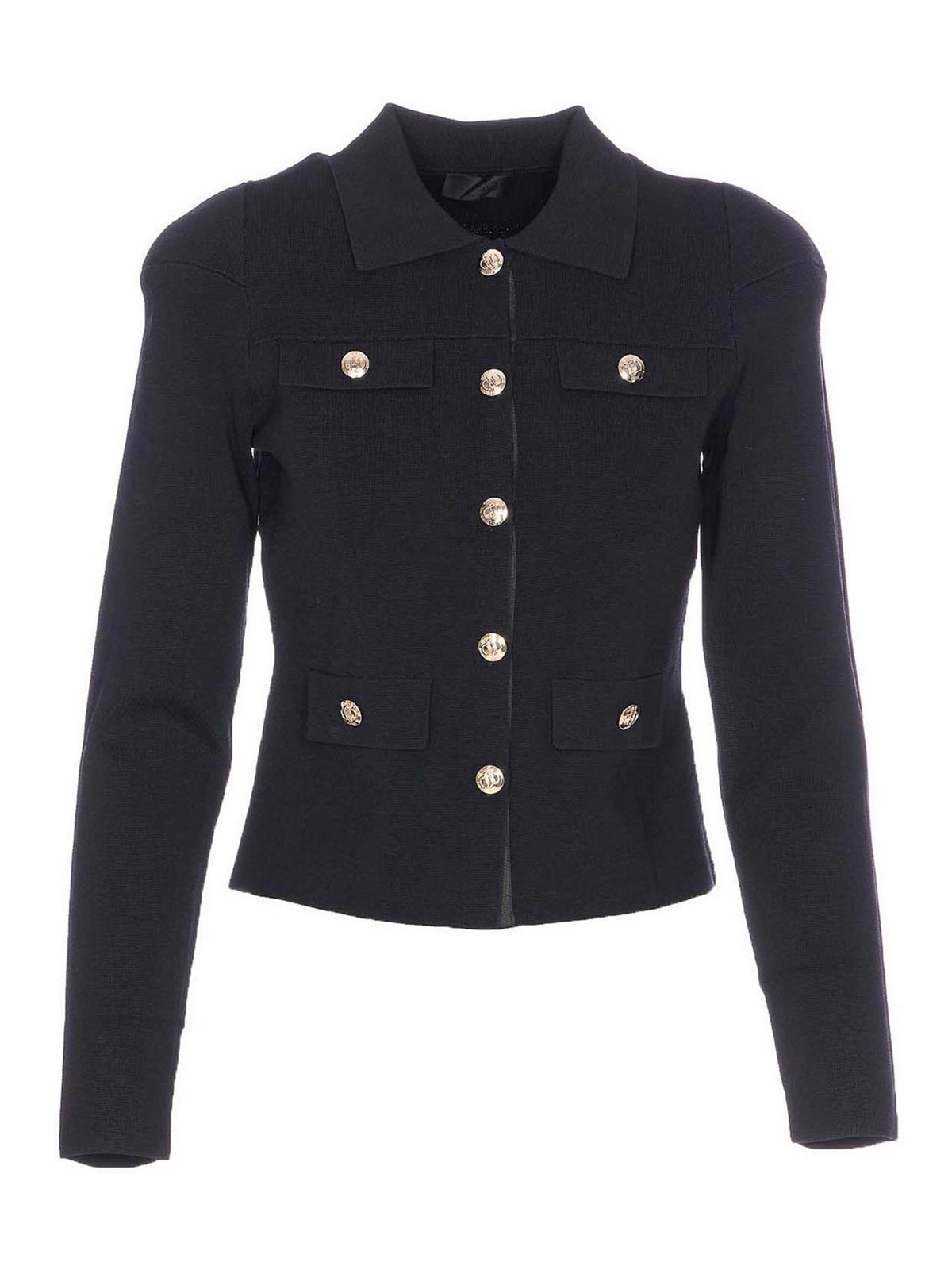 Liu Jo schwarze Jacke, verstärkte Schultern, Knöpfe, Kragen, lange Ärmel,