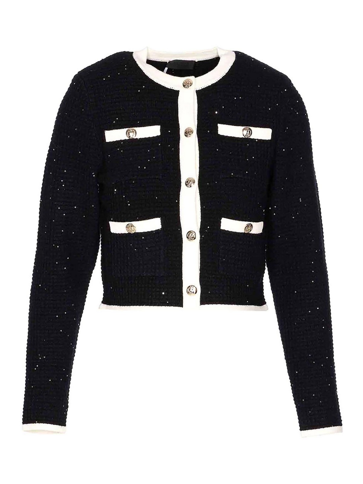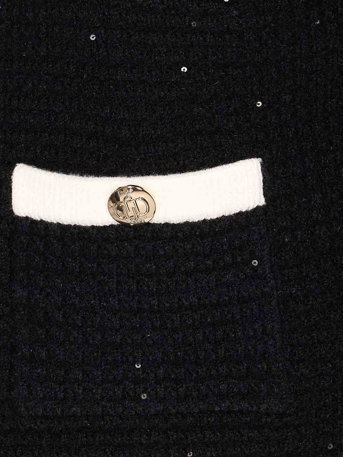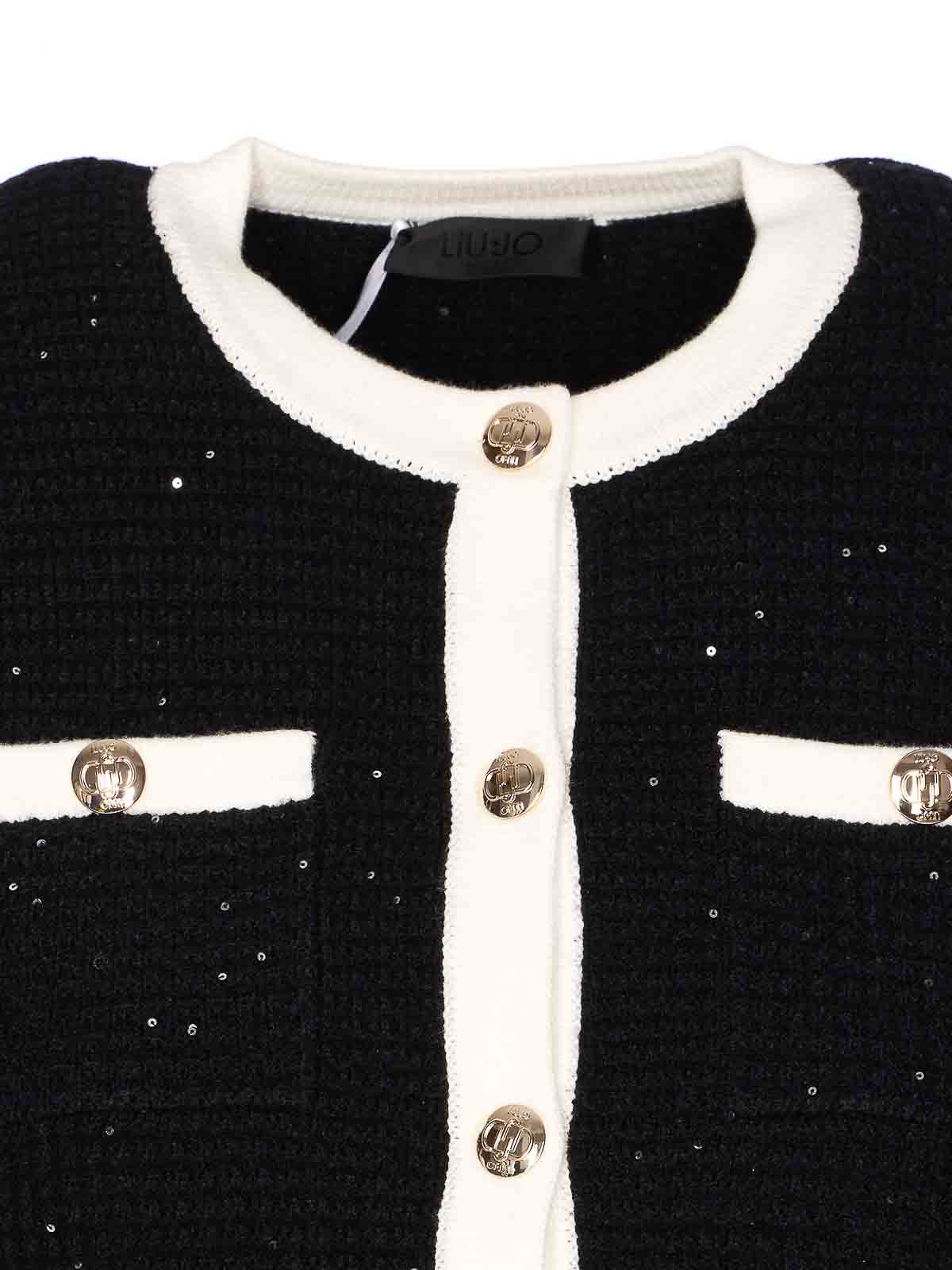 Liu Jo schwarze Jacke, Rundhalsausschnitt, verstärkte Schulterknöpfe, Mini-Pailletten, durchgehend, lange Ärmel,