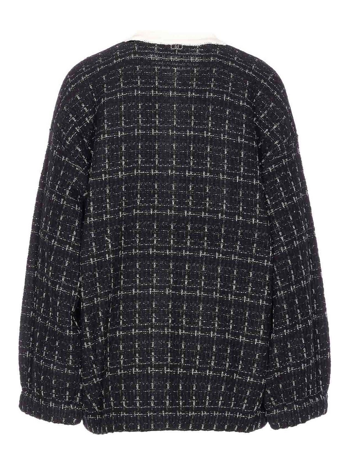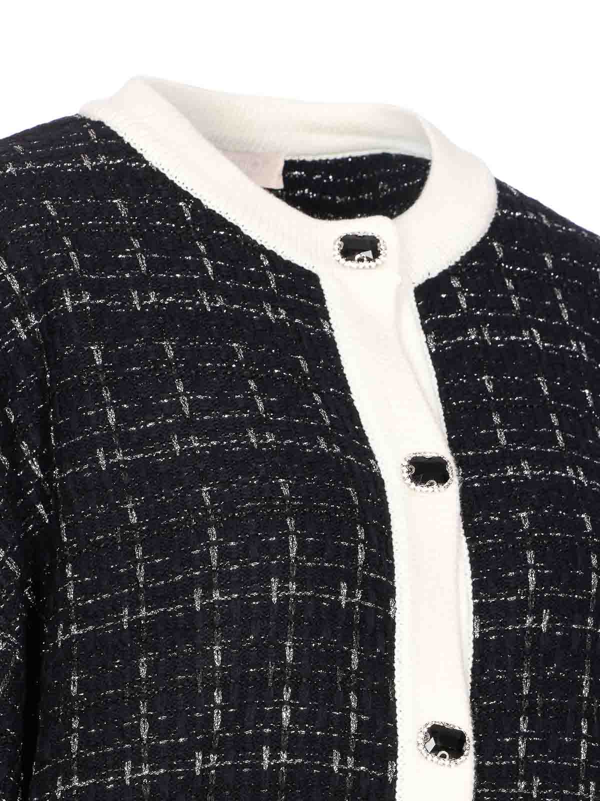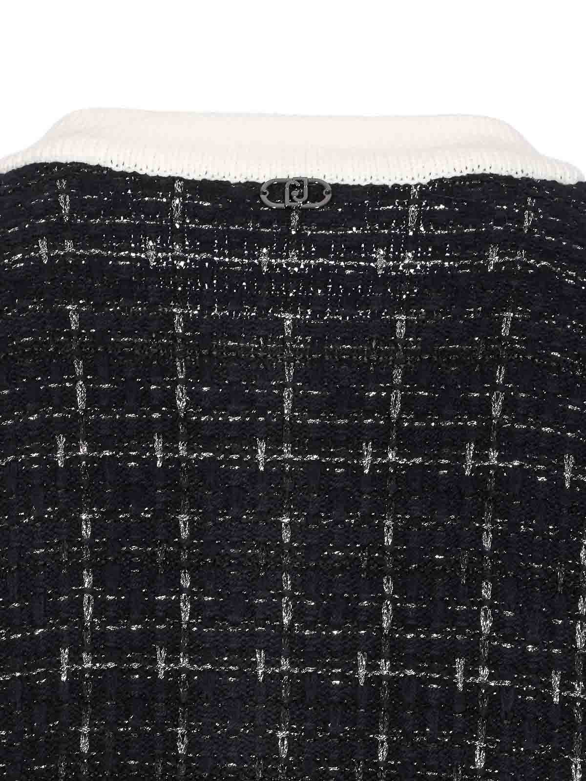 Liu Jo schwarze Tweedjacke, Juwelen, Knöpfe, Rundhalsausschnitt, lange Ärmel, Boucle, Designer-Farbbezeichnung: Schwarz
