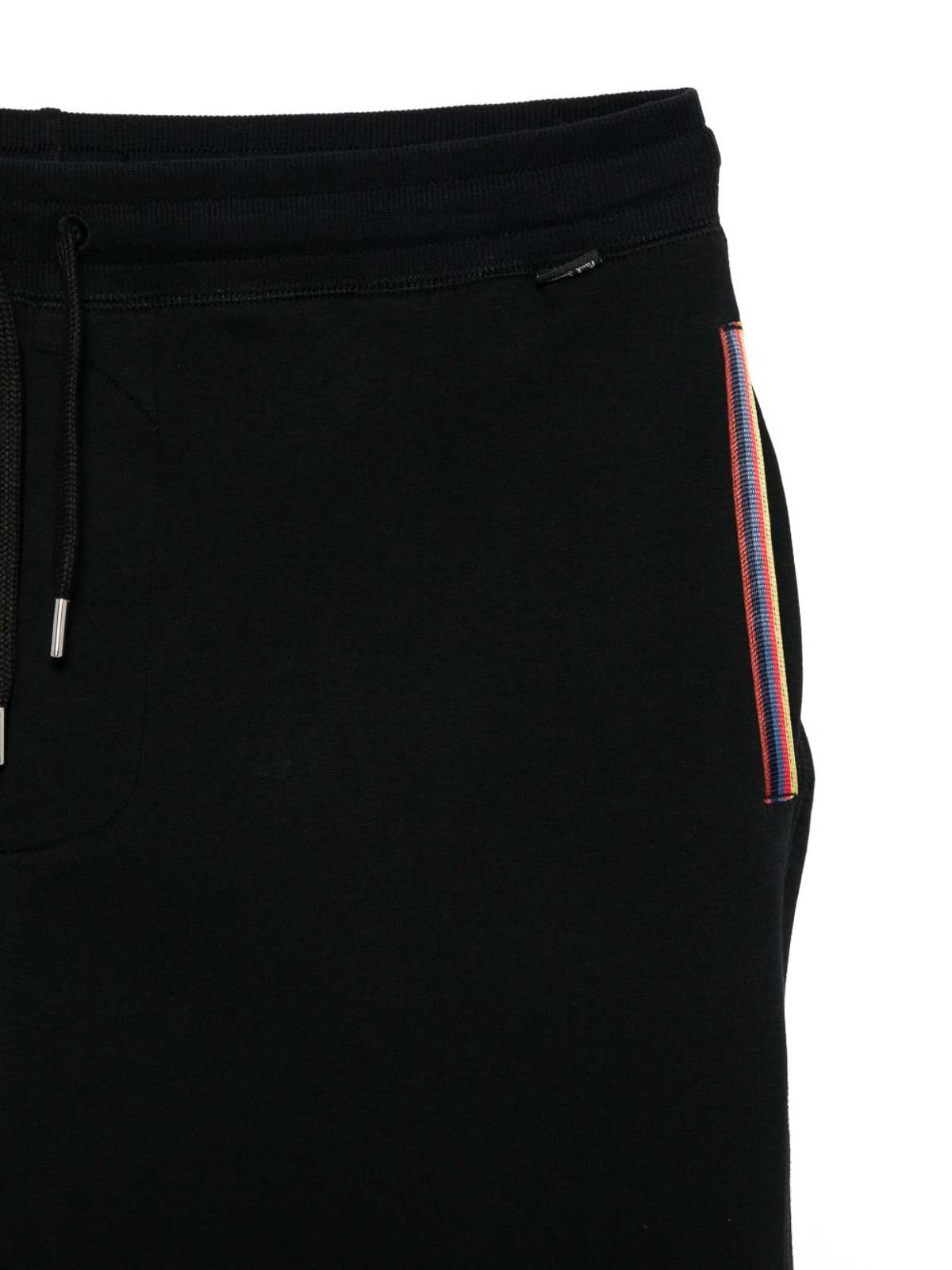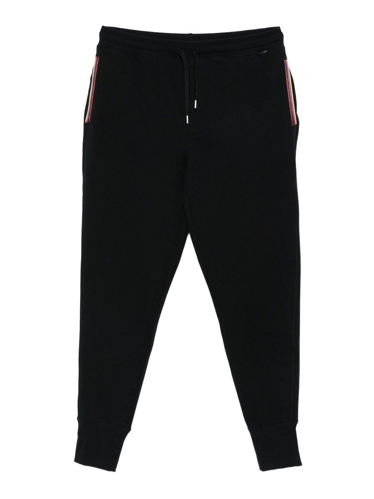 Schwarze Bündchen an den Säumen, Kordelzug am Bund, seitliche Streifendetails, Seitentaschen