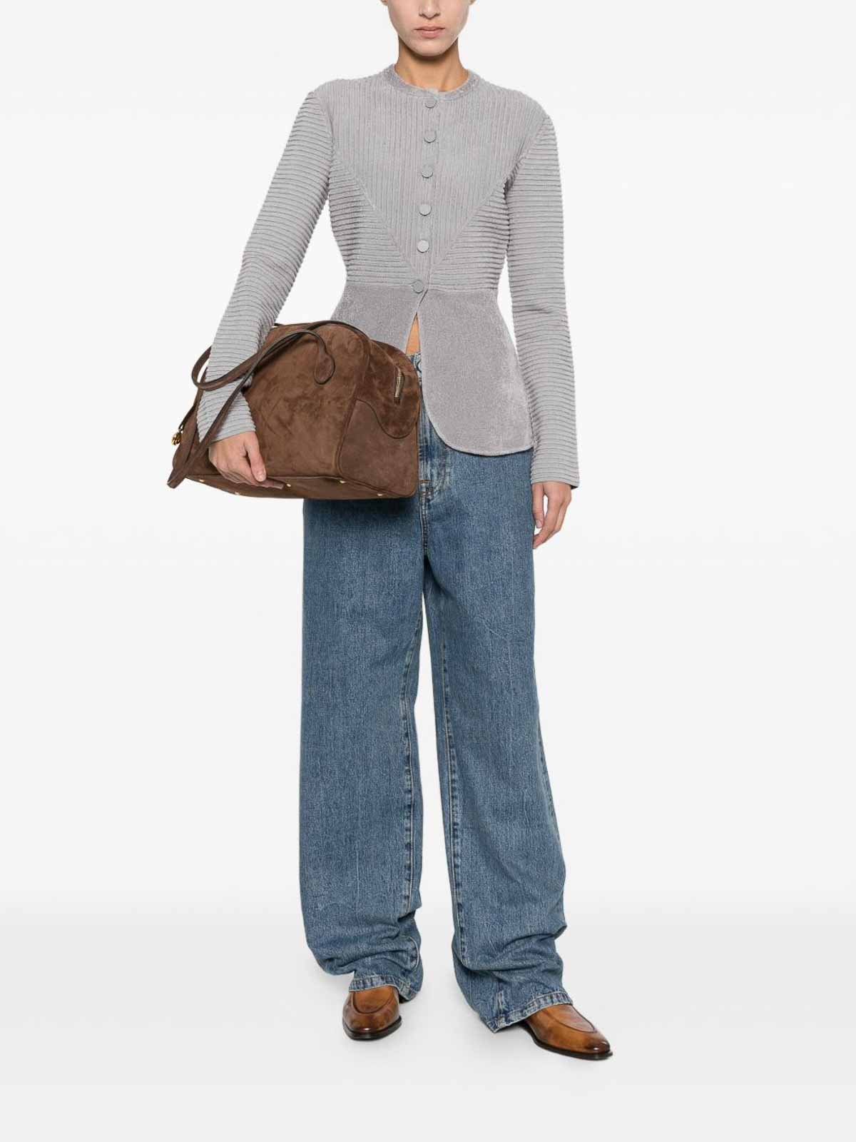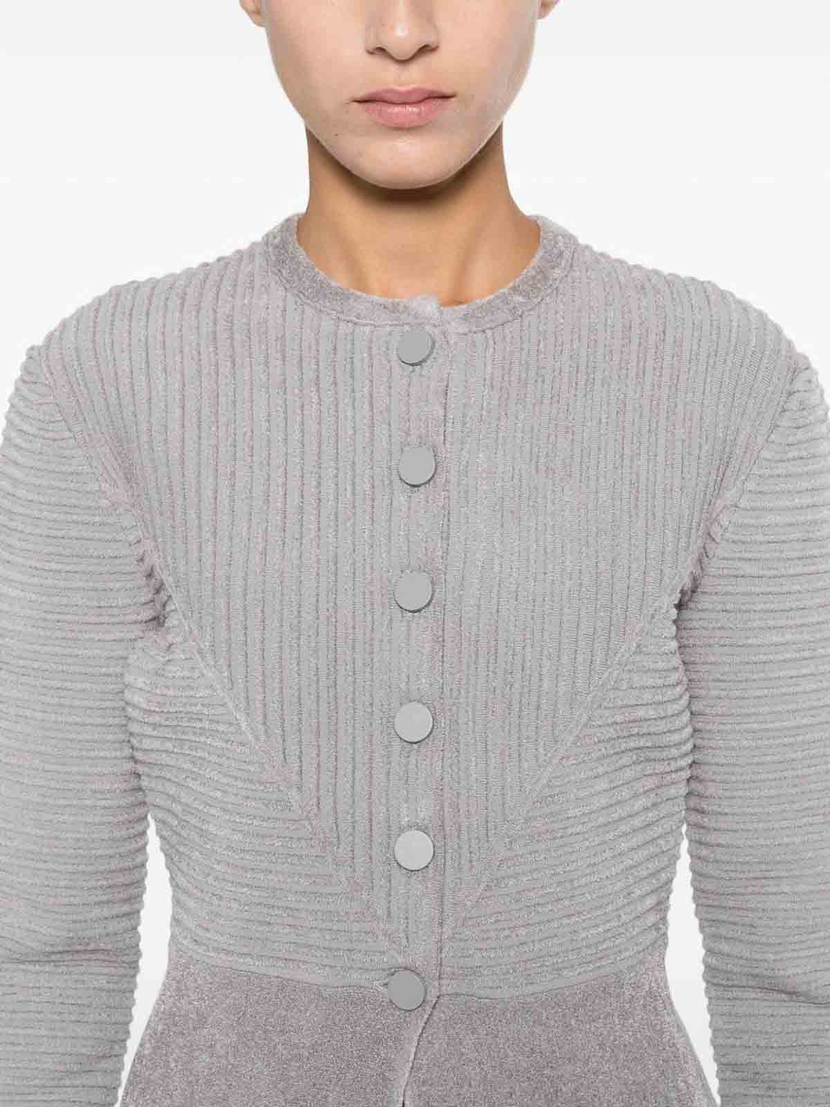 Graue, strukturierte Oberfläche, Knopfverschluss, Rundhalsausschnitt, lange Ärmel