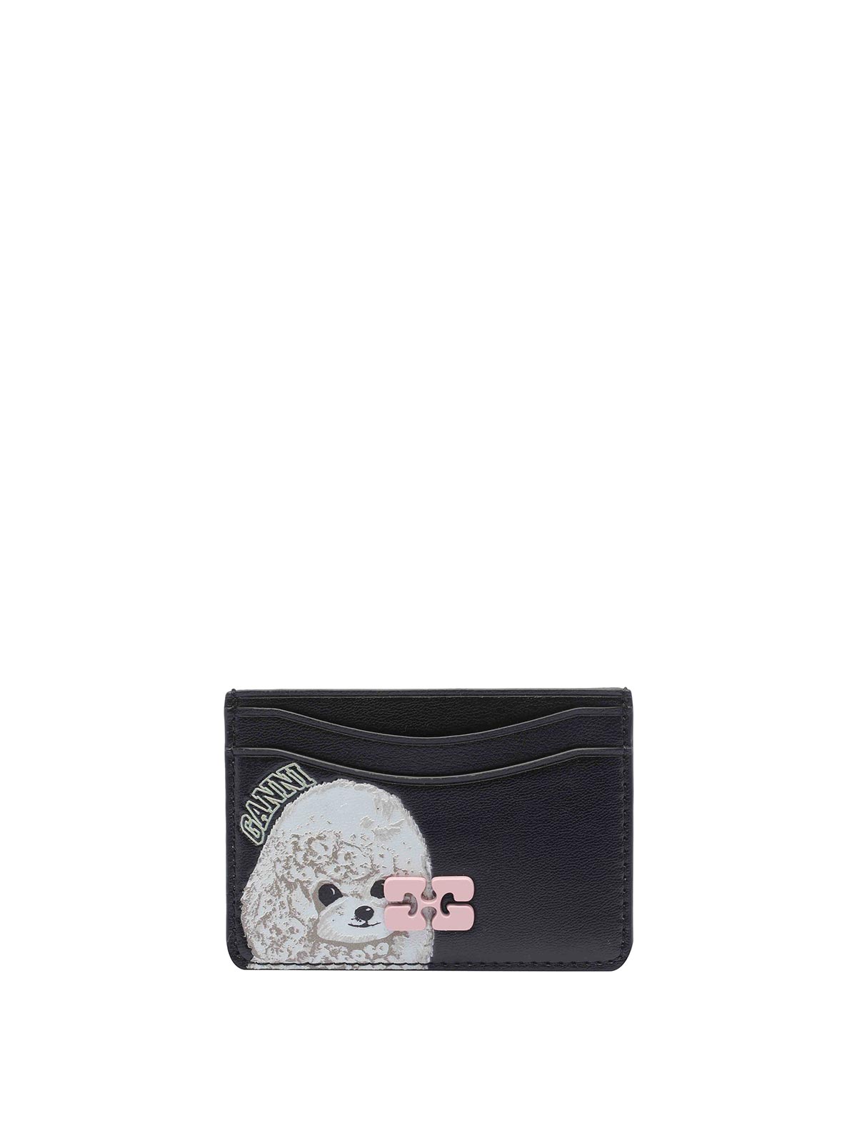 Kartenetui mit schwarzen Bou Animals, Steckfächer, offene Tasche, Logo und Aufdruck auf der Vorderseite