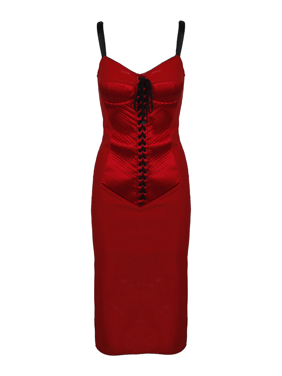 Kleid im Stretch-Design, Spaghettiträger, herzförmiger Ausschnitt, Schnürverschluss im Korsettstil vorne, Reißverschluss hinten, mittellang, von Sweet Gabbana