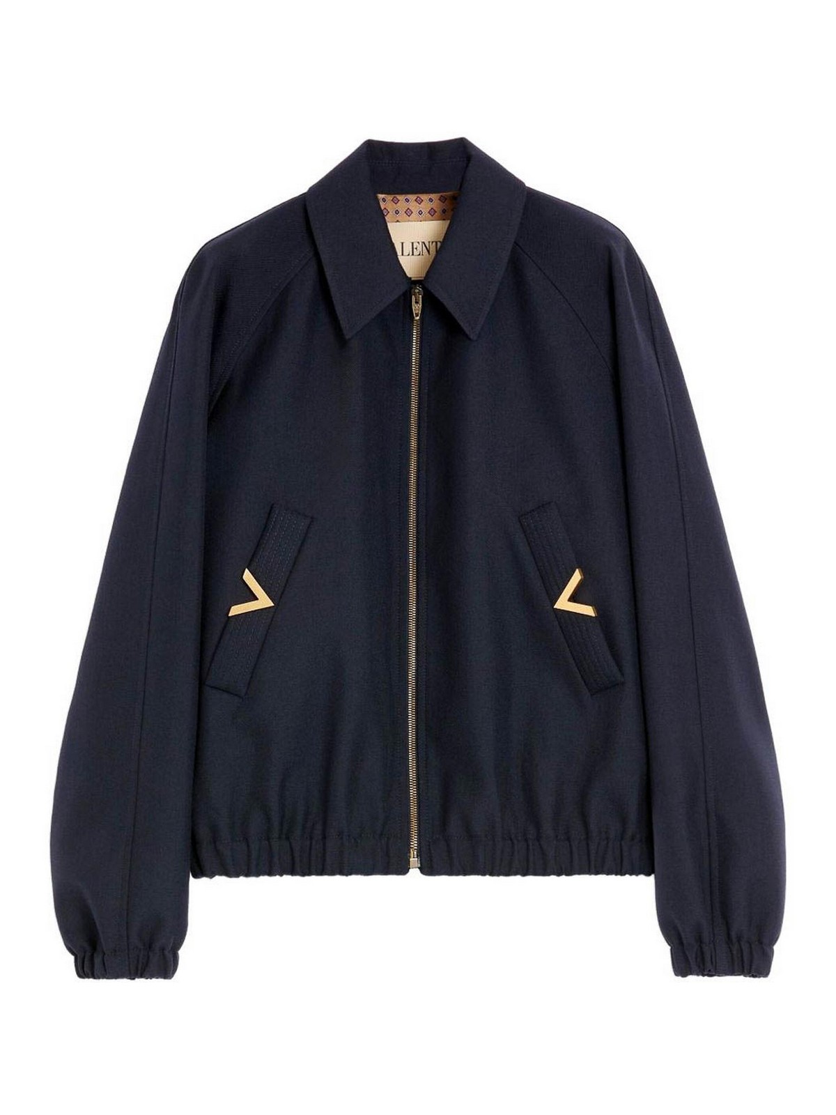 Aufgesetzte Leistentaschen in Marineblau/Gold, elastischer Rippsaum, Reißverschluss, schmale Passform