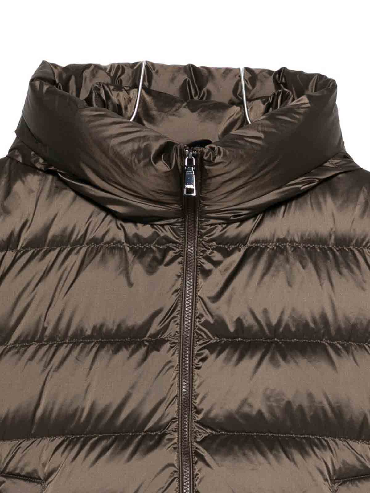 Braunes, gestepptes Design mit Stehkragen und Reißverschluss und langen Ärmeln