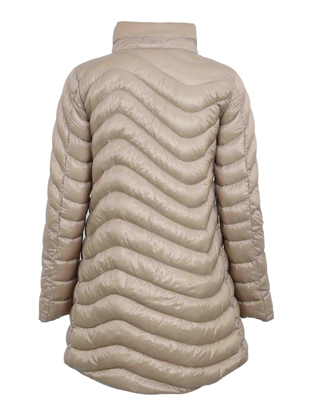 Ultraleichtes, wellenförmiges, gestepptes Design, lange Ärmel, hoher Kragen mit Kordelzug, Seitentaschen, doppelter, Slider-Reißverschluss, Logo-Plakette auf der Rückseite, gepolstertes Futter