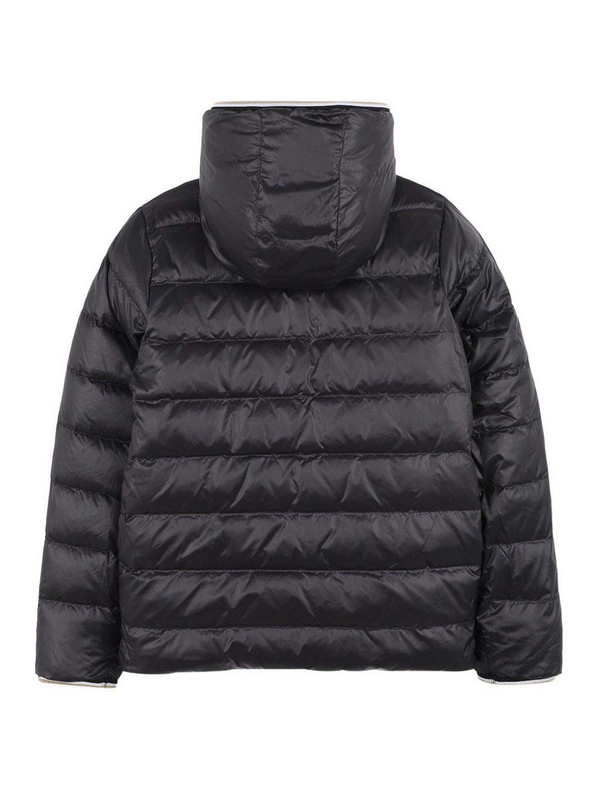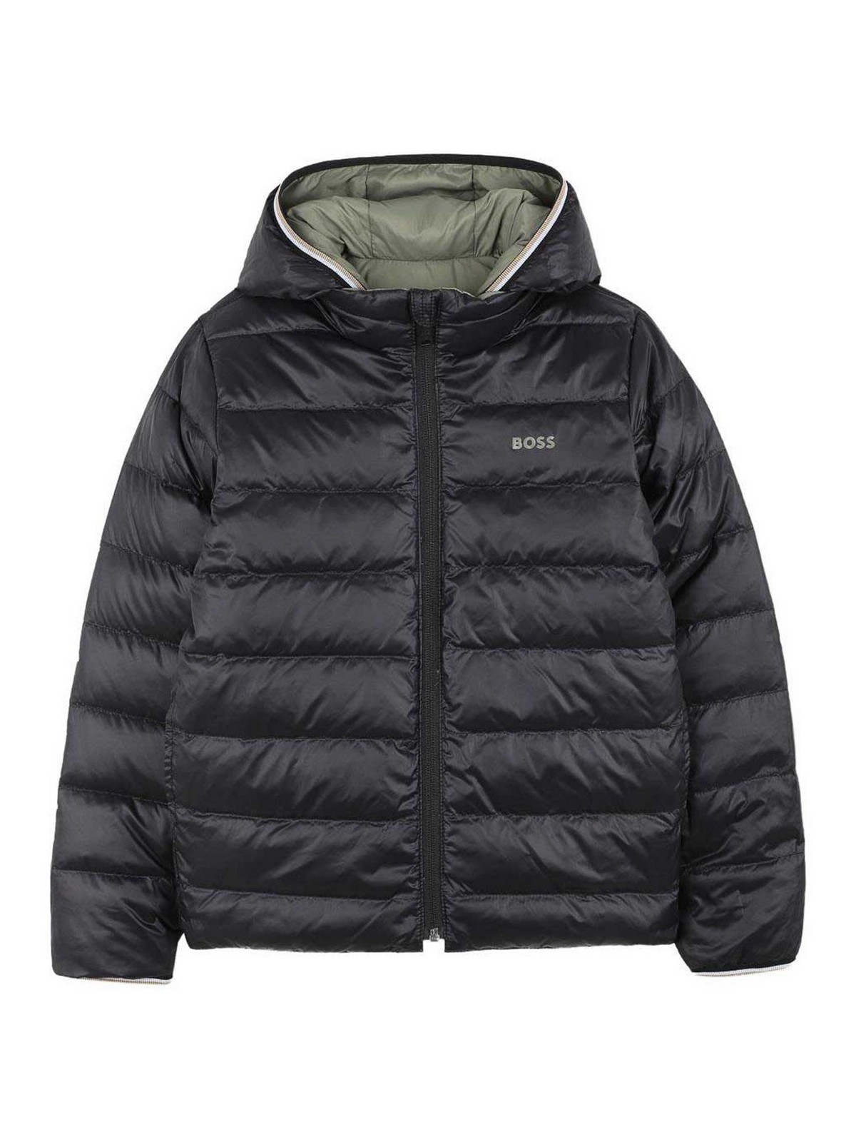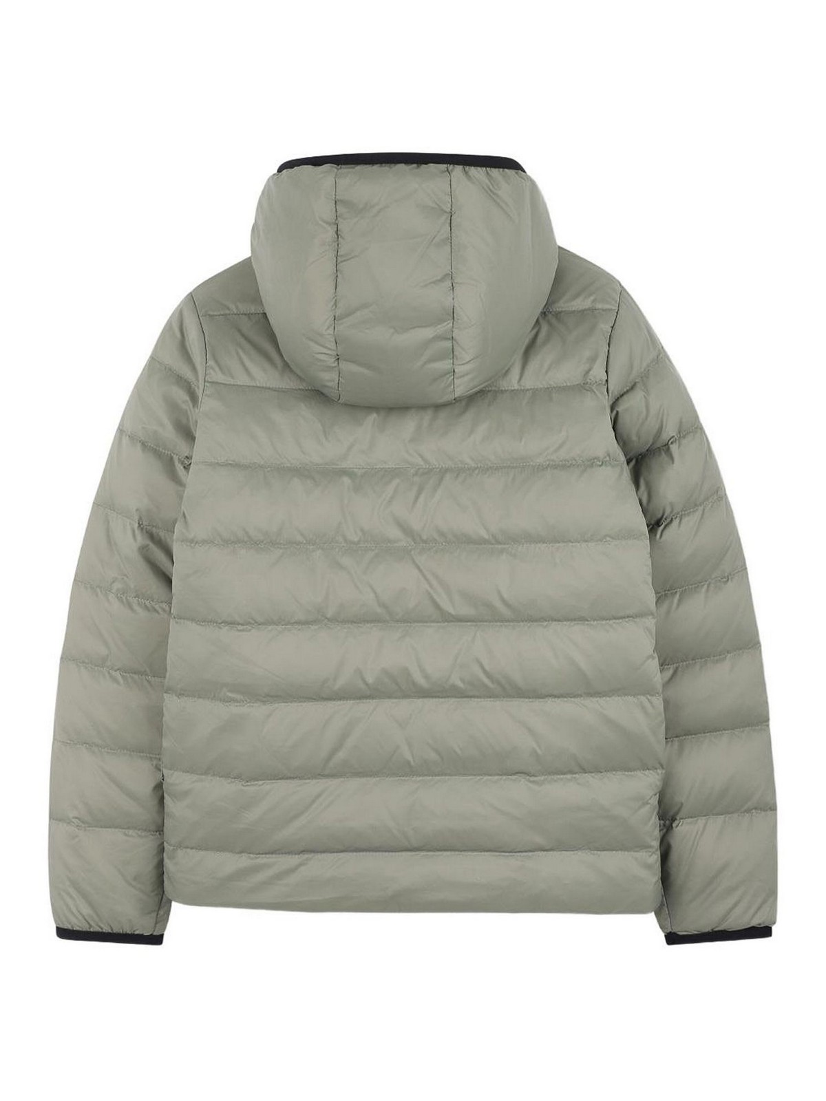 Wendbare Daunenjacke mit grünem, gestepptem Design, Kapuzenausschnitt und Zip-Logo, wendbares Design