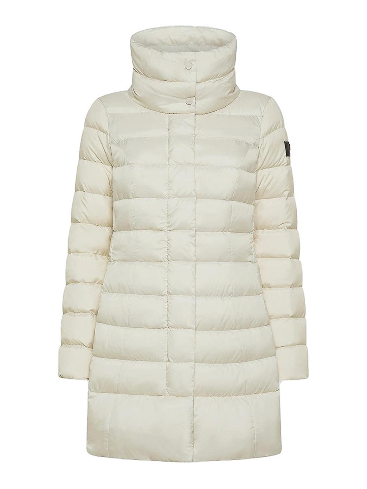 Lange Daunenjacke von Peuterey mit hohem Kragen aus superleichtem Material mit engen Kanälen, hergestellt aus 100% recyceltem Polyester, behandelt mit PFC-freier Technologie, die wasserabweisende Eigenschaften ohne den Einsatz schädlicher Chemikalien garantiert, zertifizierte natürliche Daunenfüllung, von