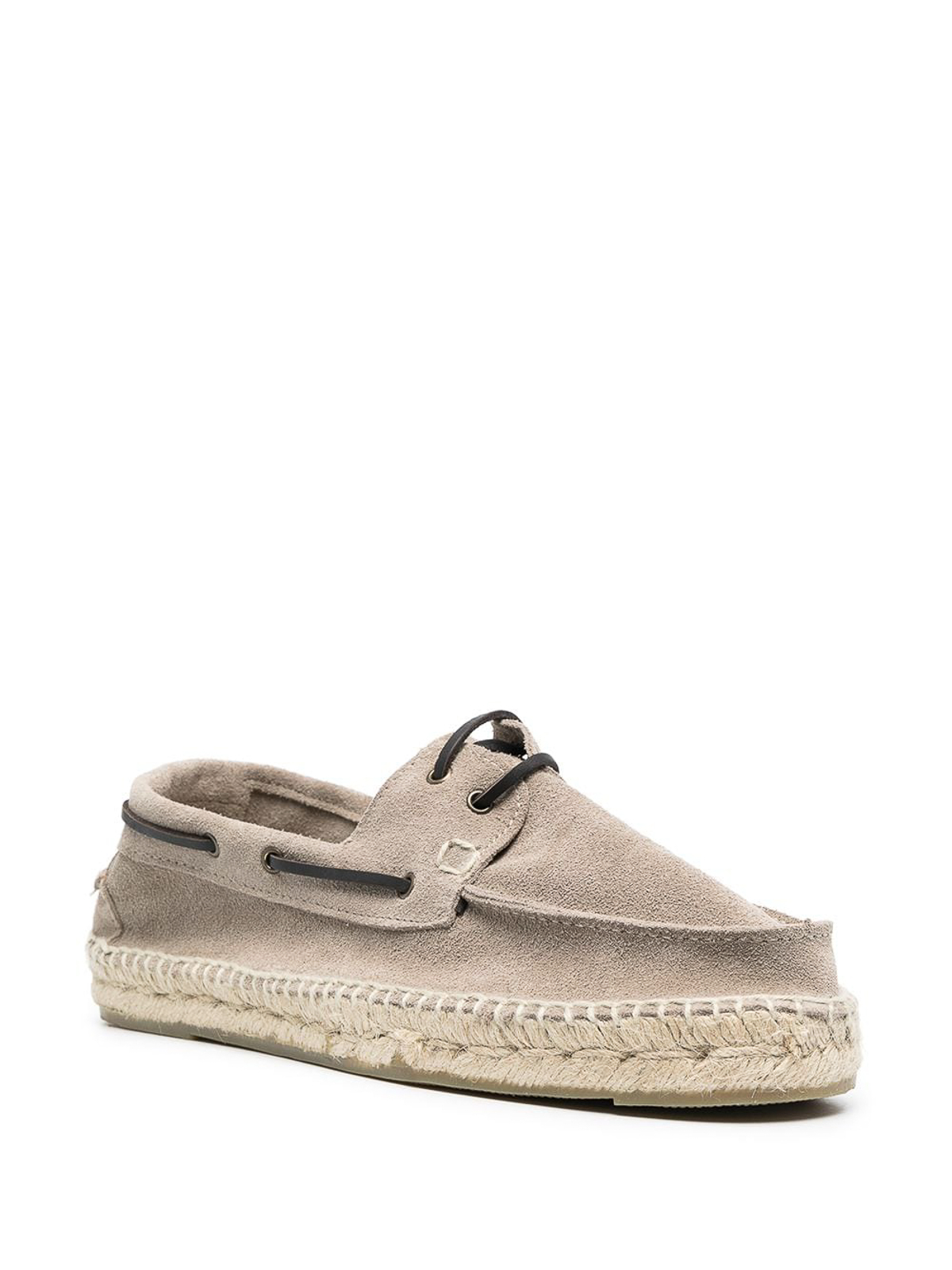 Graue Hamptons Bootsschuhe im Espadrille-Stil aus Veloursleder von Manebi mit rundem Zehenschnürdetail, Markenlogo und geflochtenem Esparto-Seil