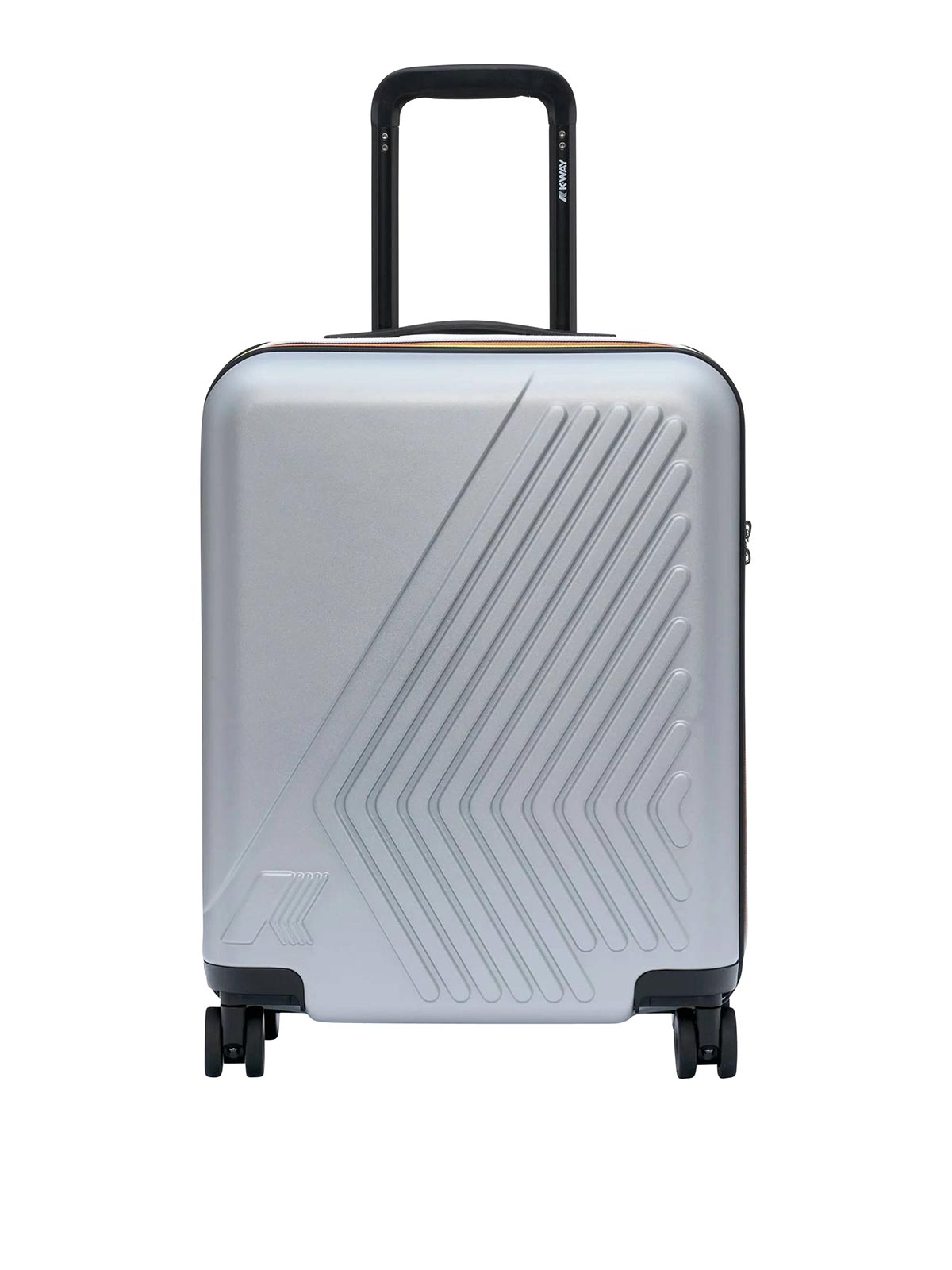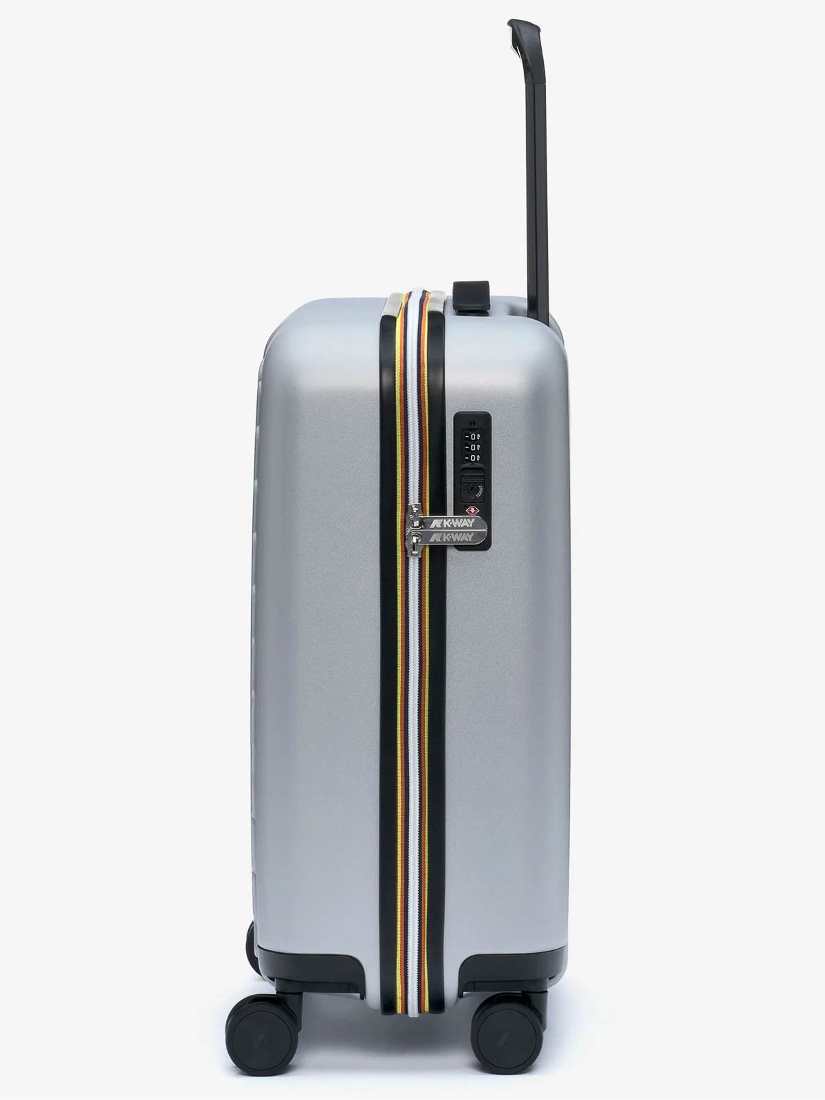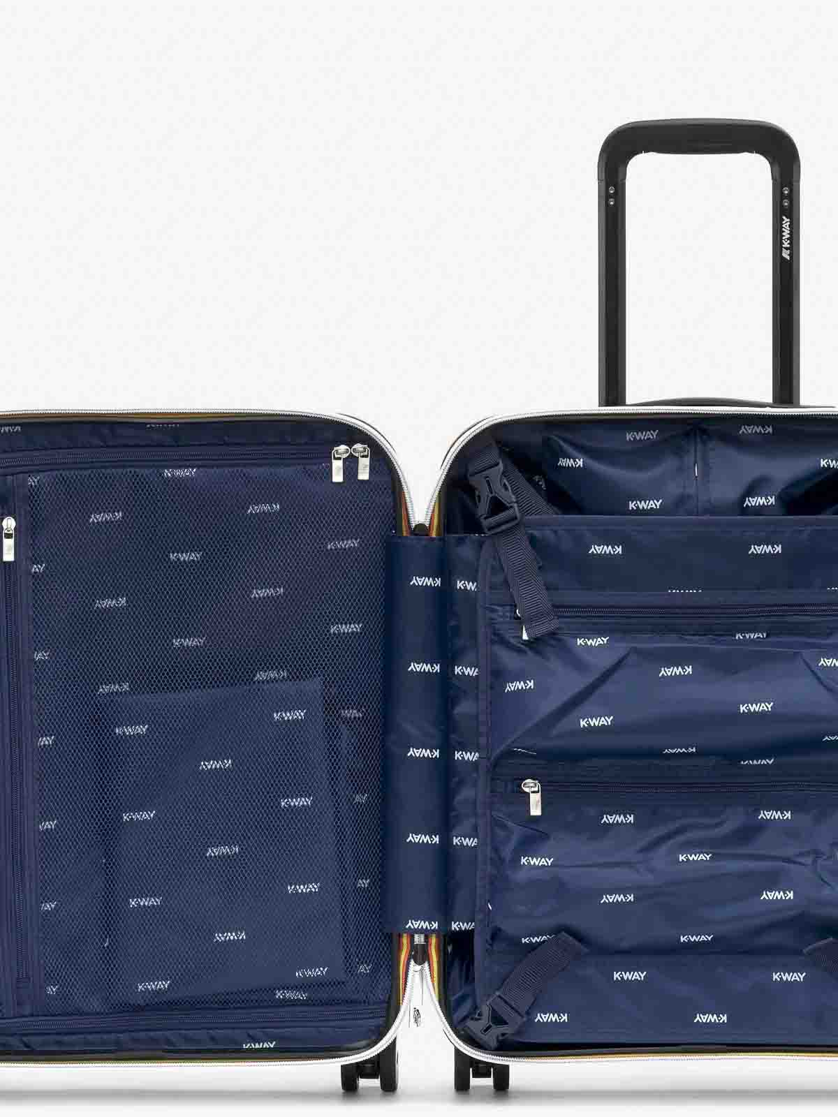 Starre Handgepäckschale aus Polycarbonat mit rundum aufgedrucktem Logo, herausnehmbares Trennpanel mit Netztasche, kleine Reißverschlusstasche, Wäschesack mit Kordelzug, schwenkbare Räder, ausziehbarer Griff, Kombinationssystem mit TSA, Ton in Ton geprägtes K-Monogramm-Etikett für Gepäcketikett, Weg
