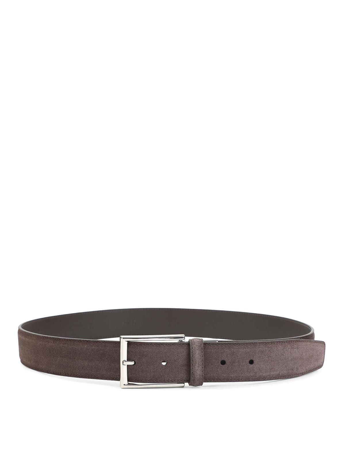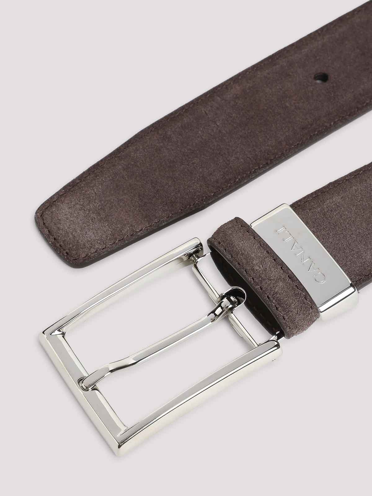 Canali Gürtel aus braunem Veloursleder. Gürtel aus reinem braunem Veloursleder, silberfarbene Metallschnalle auf der Vorderseite, verstellbares Design, Gürtelschlaufe, tonale Nähte.