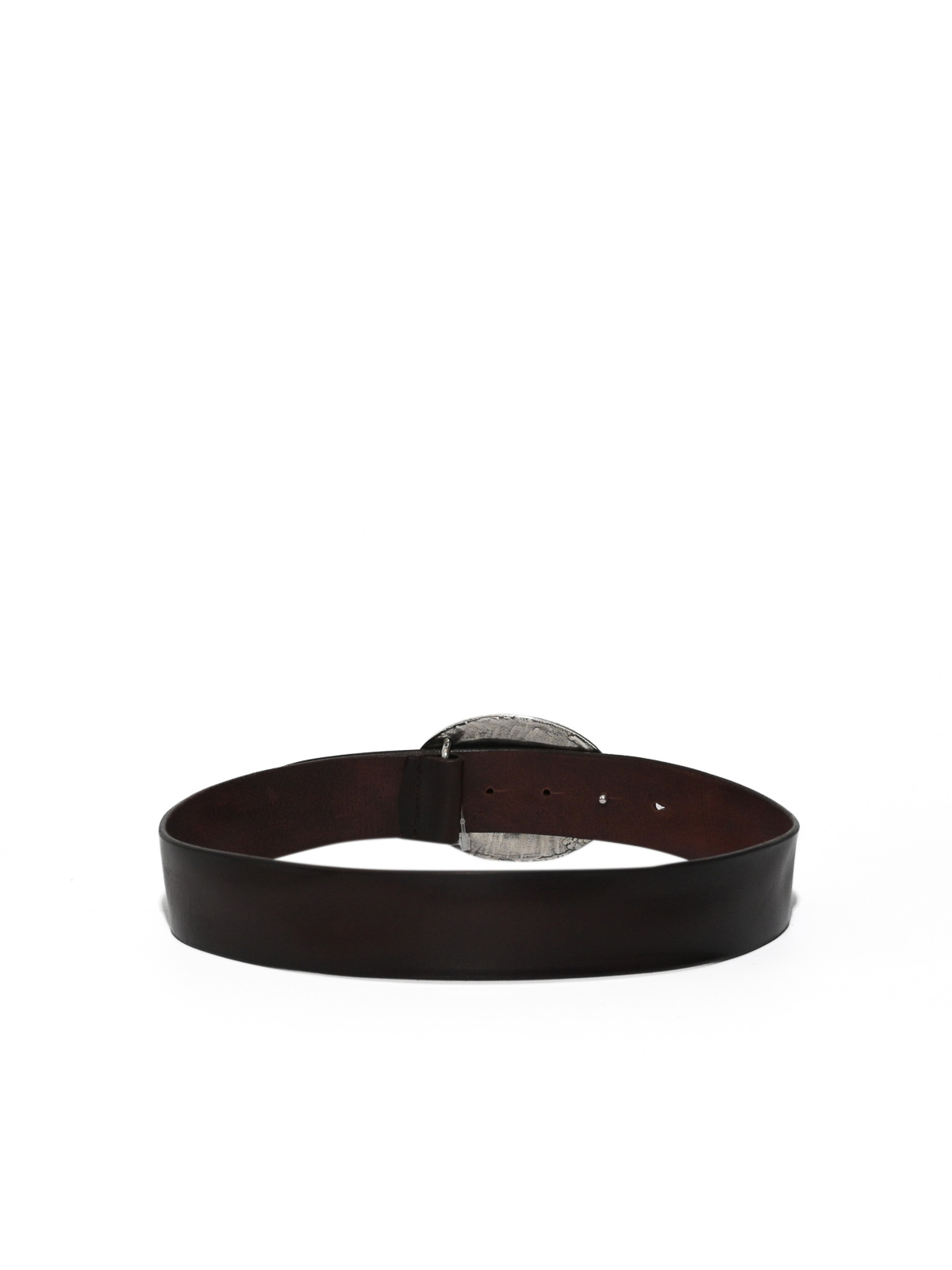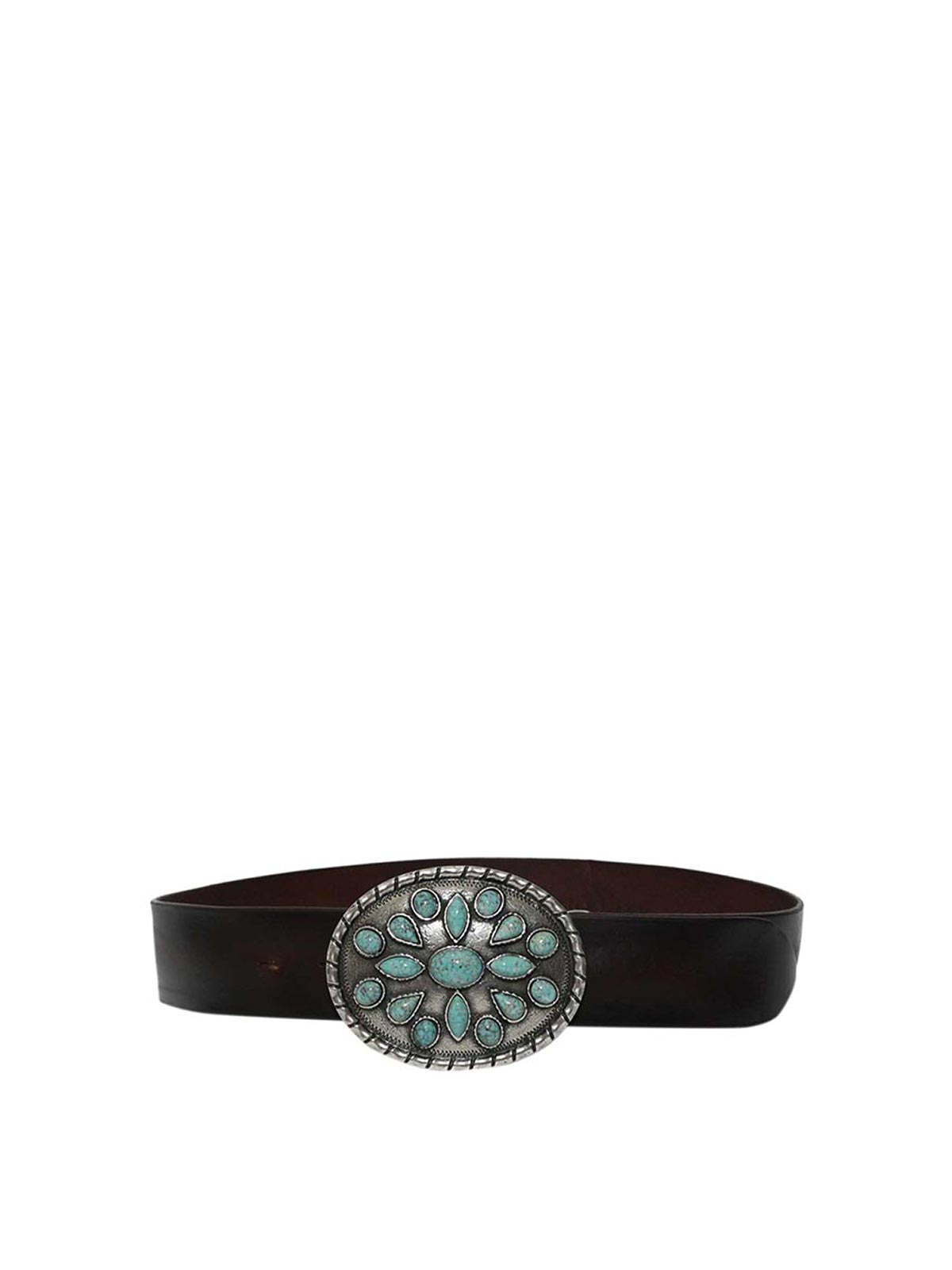 Ledergürtel, Orciani, Western Bull Soft-Modell, Material: Leder, Muster: einfarbig, Verschluss: Dornschließe, Details: ovale Maxi-Schnalle aus Metall mit graviertem Dekor und Applikationen in Türkisoptik, leicht abgenutzte Oberfläche, abgestimmte Schlaufe, gefüttert: nein, Passform/Tragbarkeit: Taille