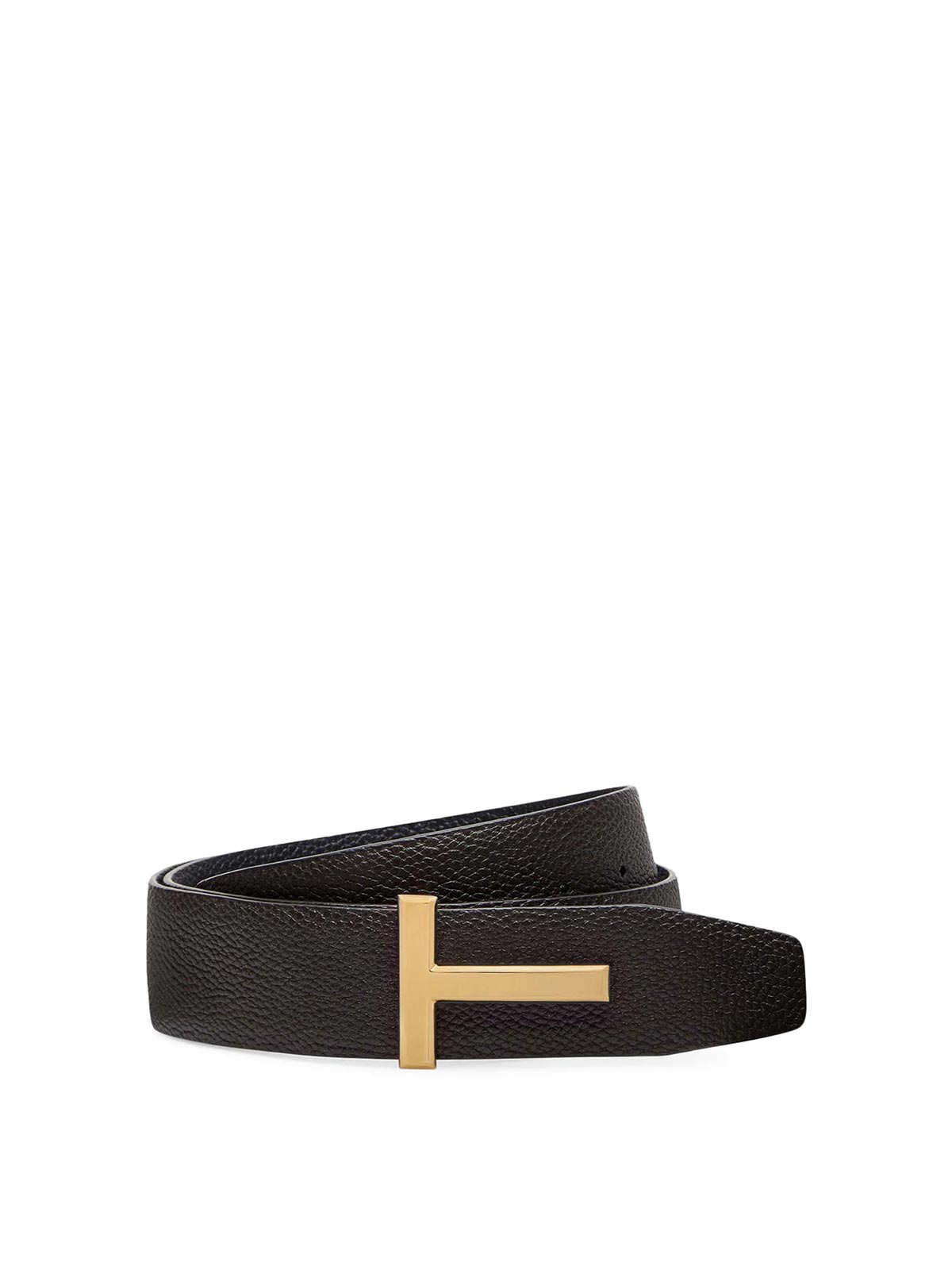 Ridge t Wendegürtel aus gehämmertem Leder, goldfarbene Hardware, Schnallenverschluss mit Logo, 40 mm, Farbe: Schwarz/Braun