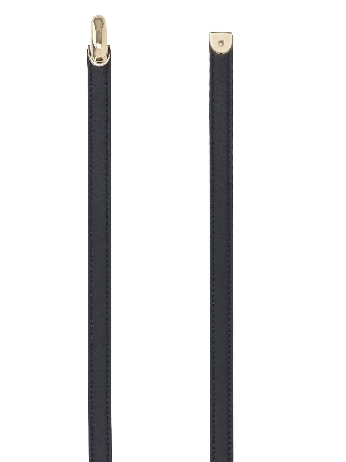 Symmetriegürtel Savette aus schwarzem Kalbsleder, goldfarbener Metallschnallenverschluss auf der Vorderseite.