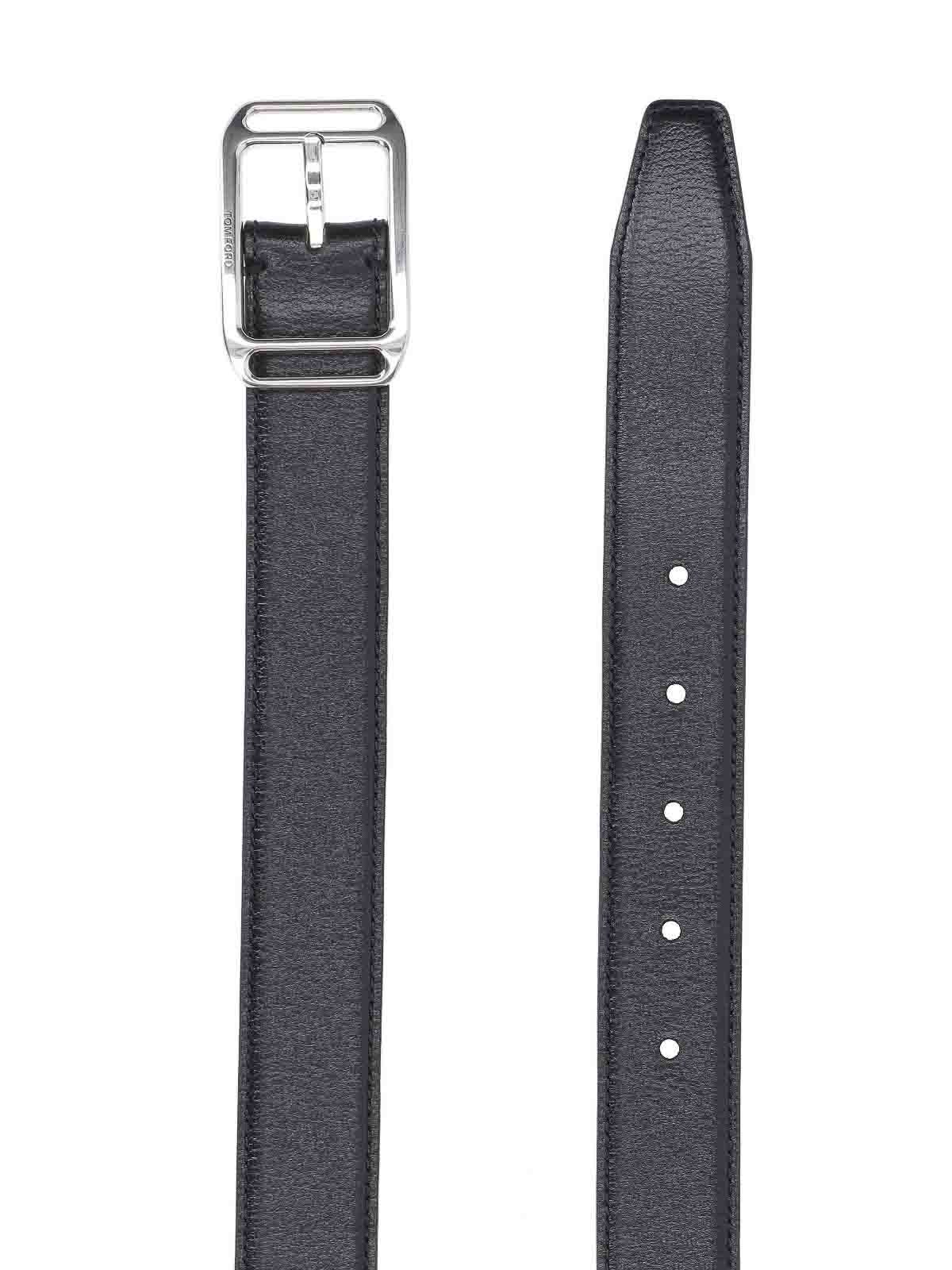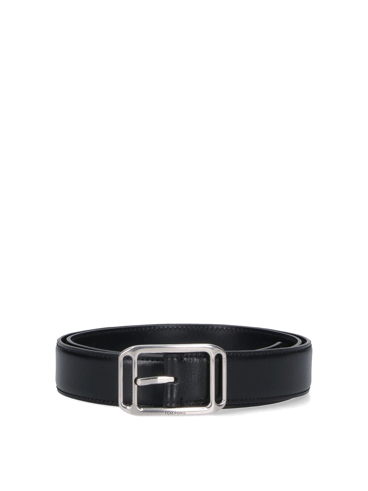 Gürtel mit Tom Ford-Logo, aus schwarzem Kalbsleder, silberne Metallschnalle, Logo-Gravur auf der Vorderseite, verstellbar.