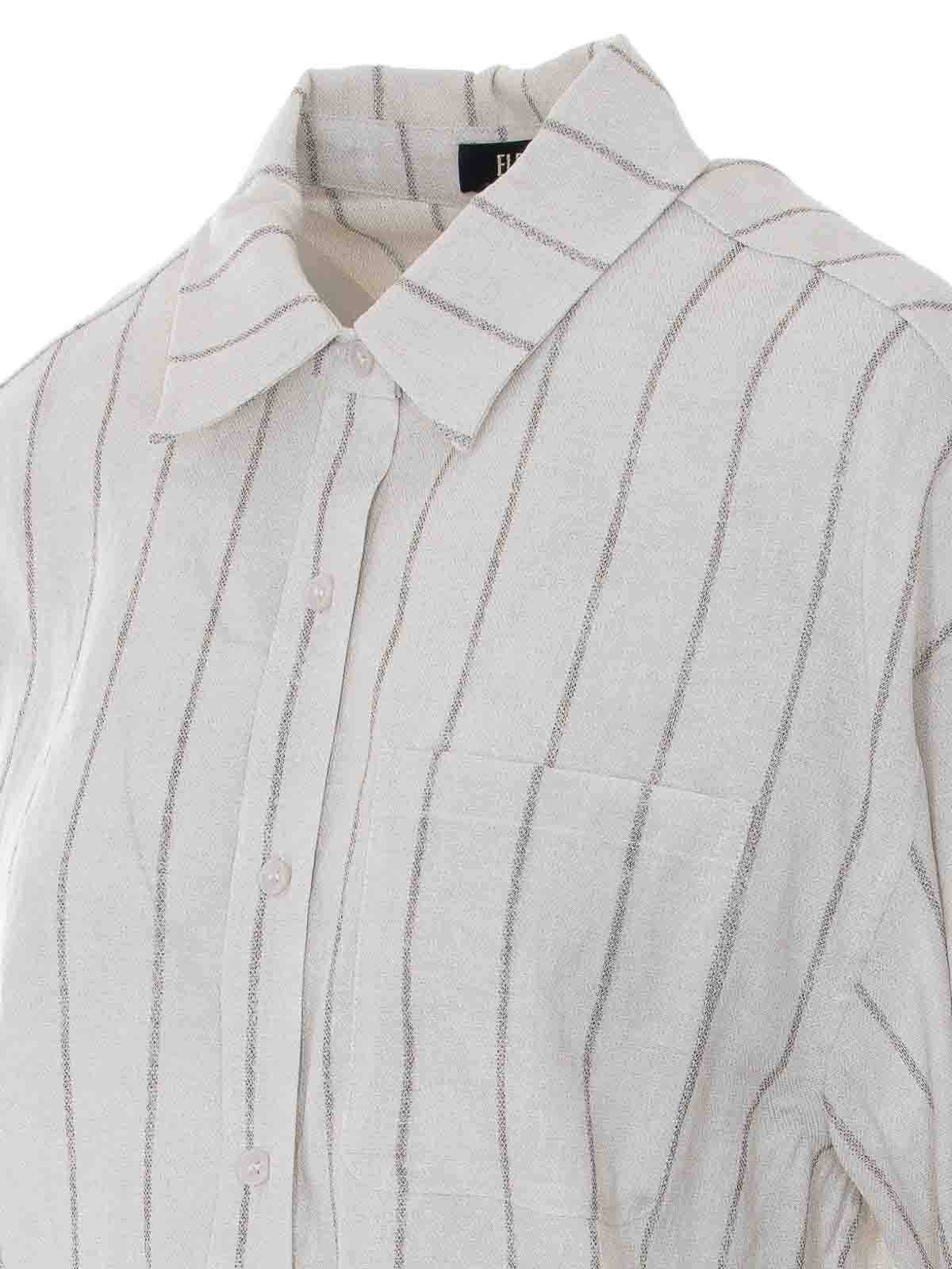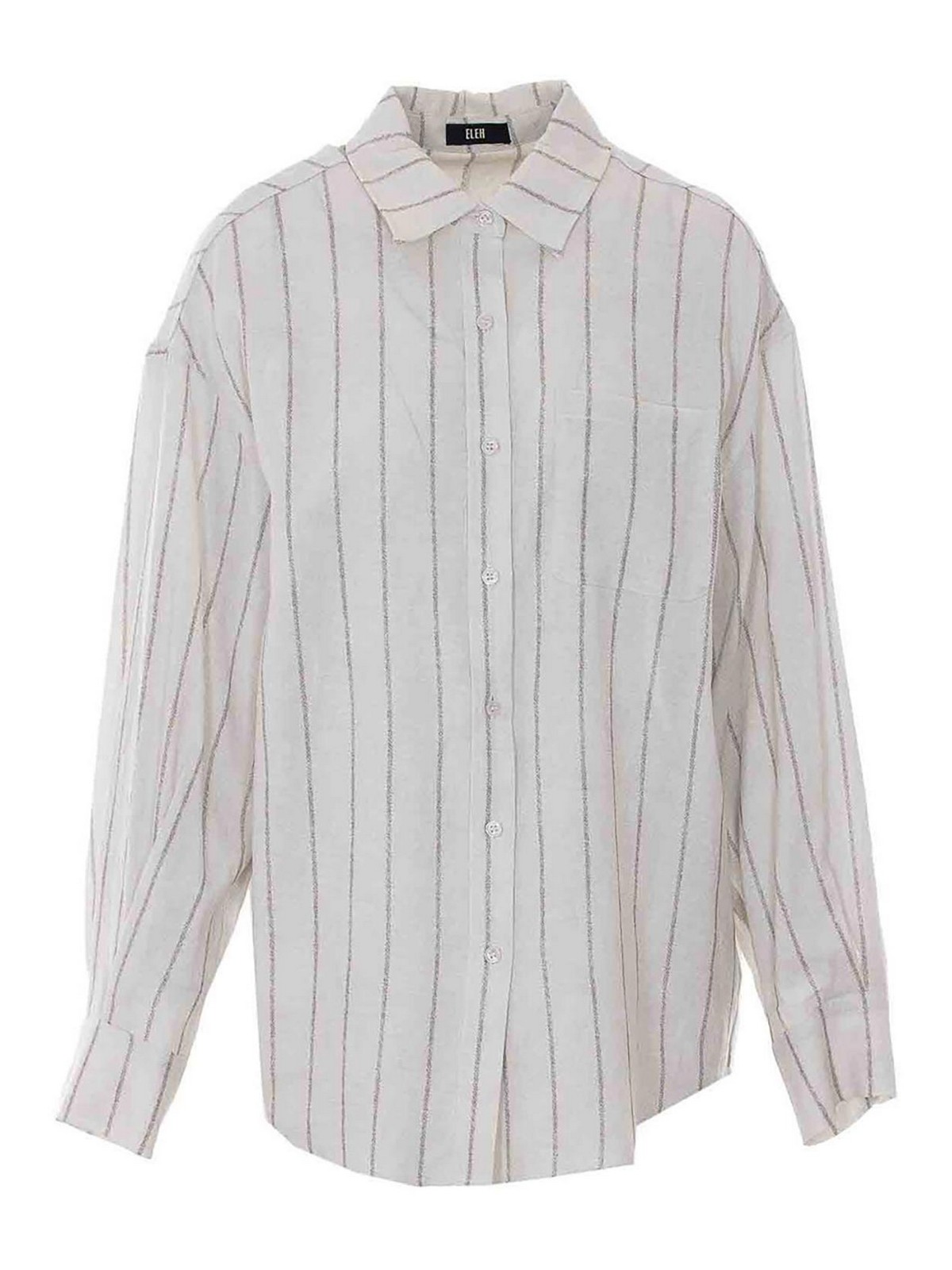Ecrufarbenes Hemd Eleh, Fronttasche, Knopfverschluss an der Vorderseite, gestreift, klassischer Kragen
