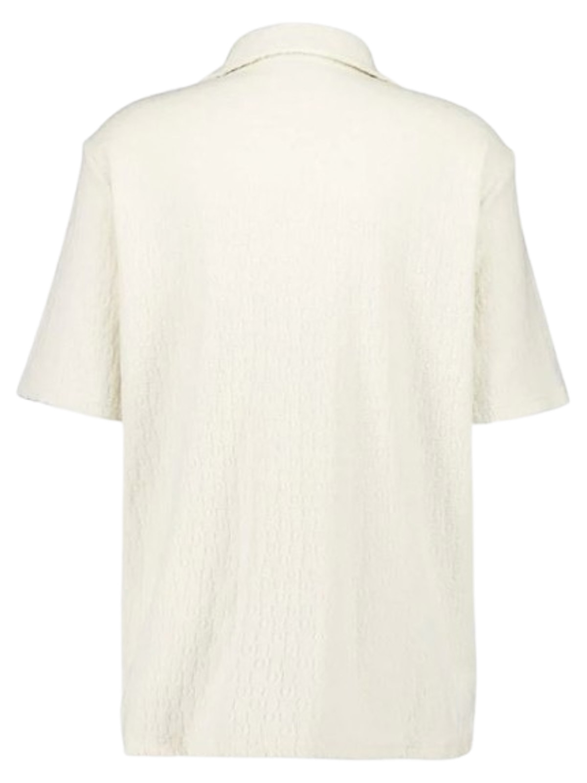 Kurzärmliges, cremefarbenes Chenille-Hemd mit Bowlingkragen und durchgehendem Jacquard-Logo.