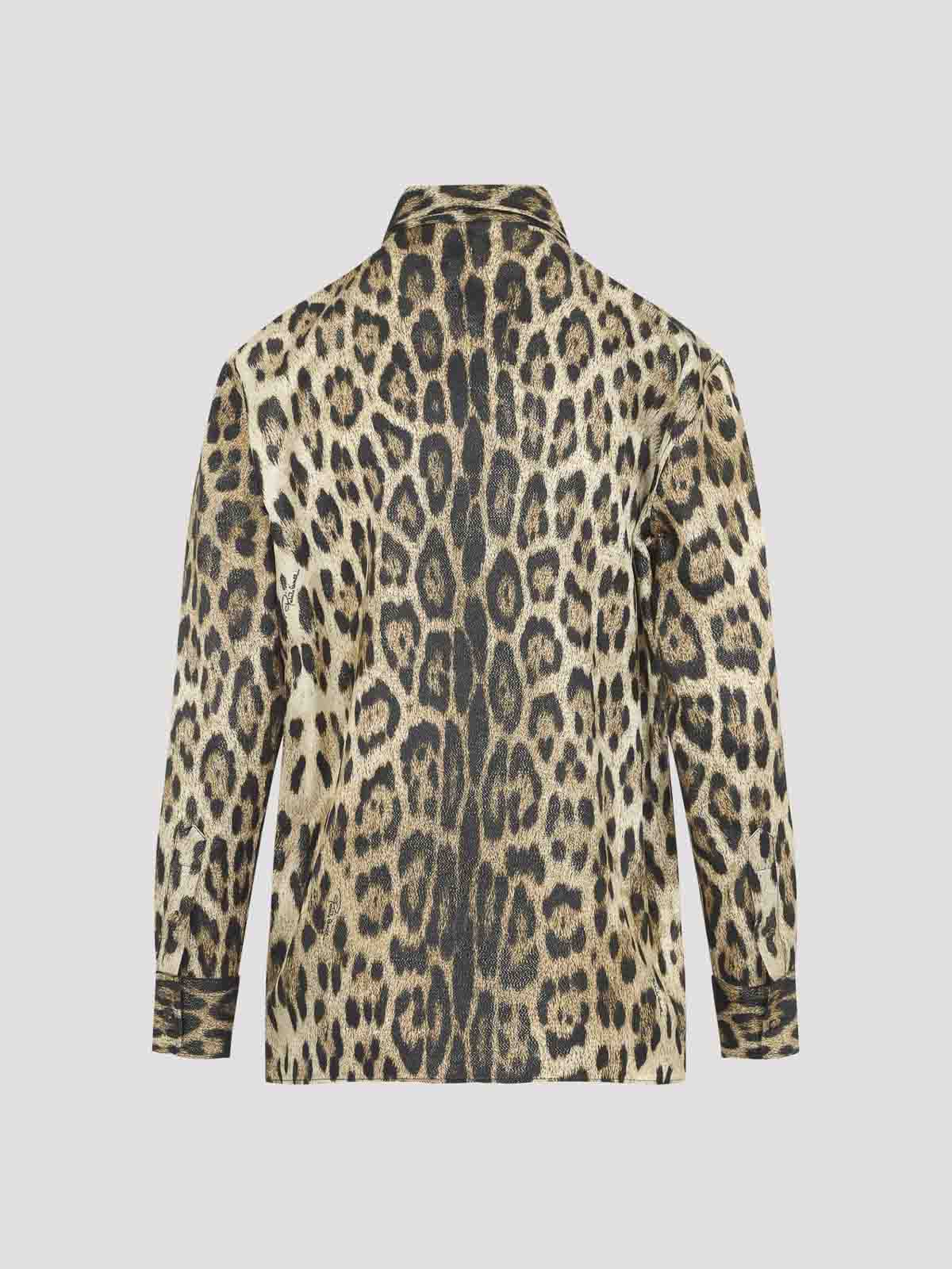 Roberto Cavalli Hemd in Naturbraun mit Jaguardmuster. Hergestellt aus einer Mischung aus Viskose, Seide und Polyester. Spitzkragen, Knopfverschluss auf der Vorderseite, lange Ärmel, geknöpfte Manschetten, gerader Saum.