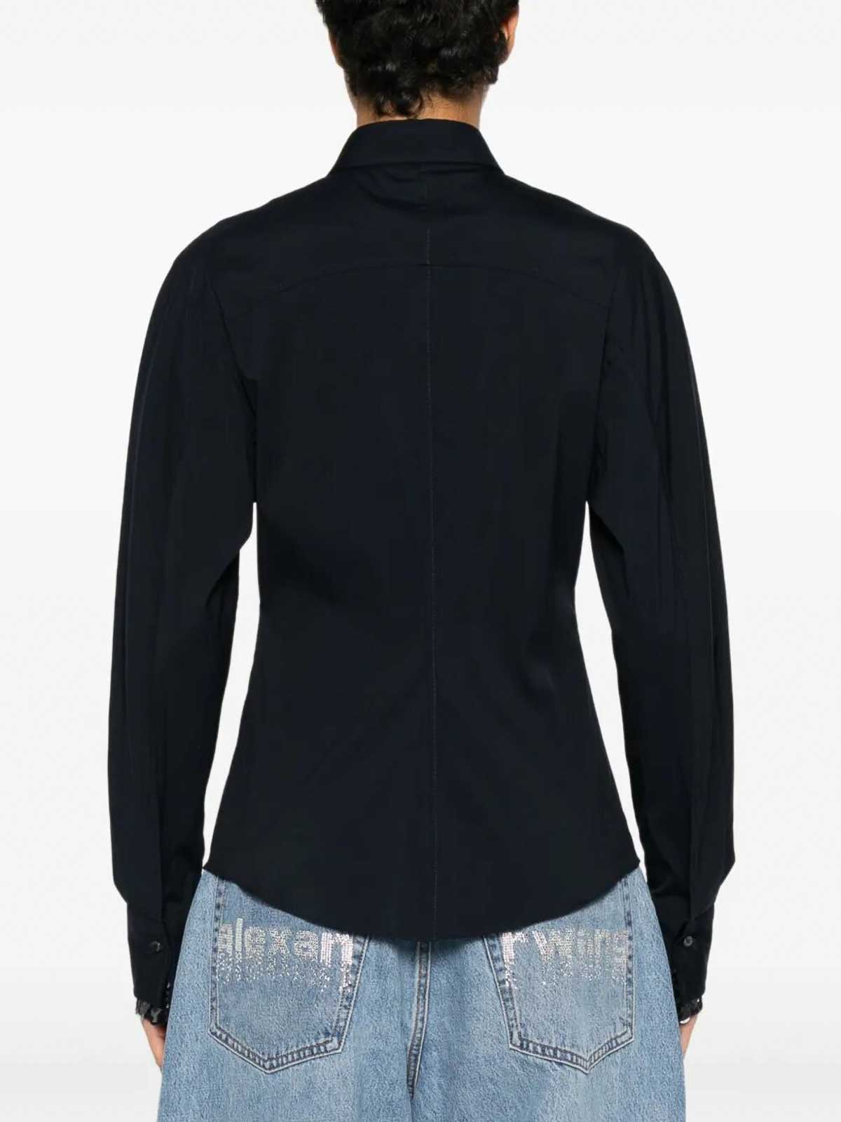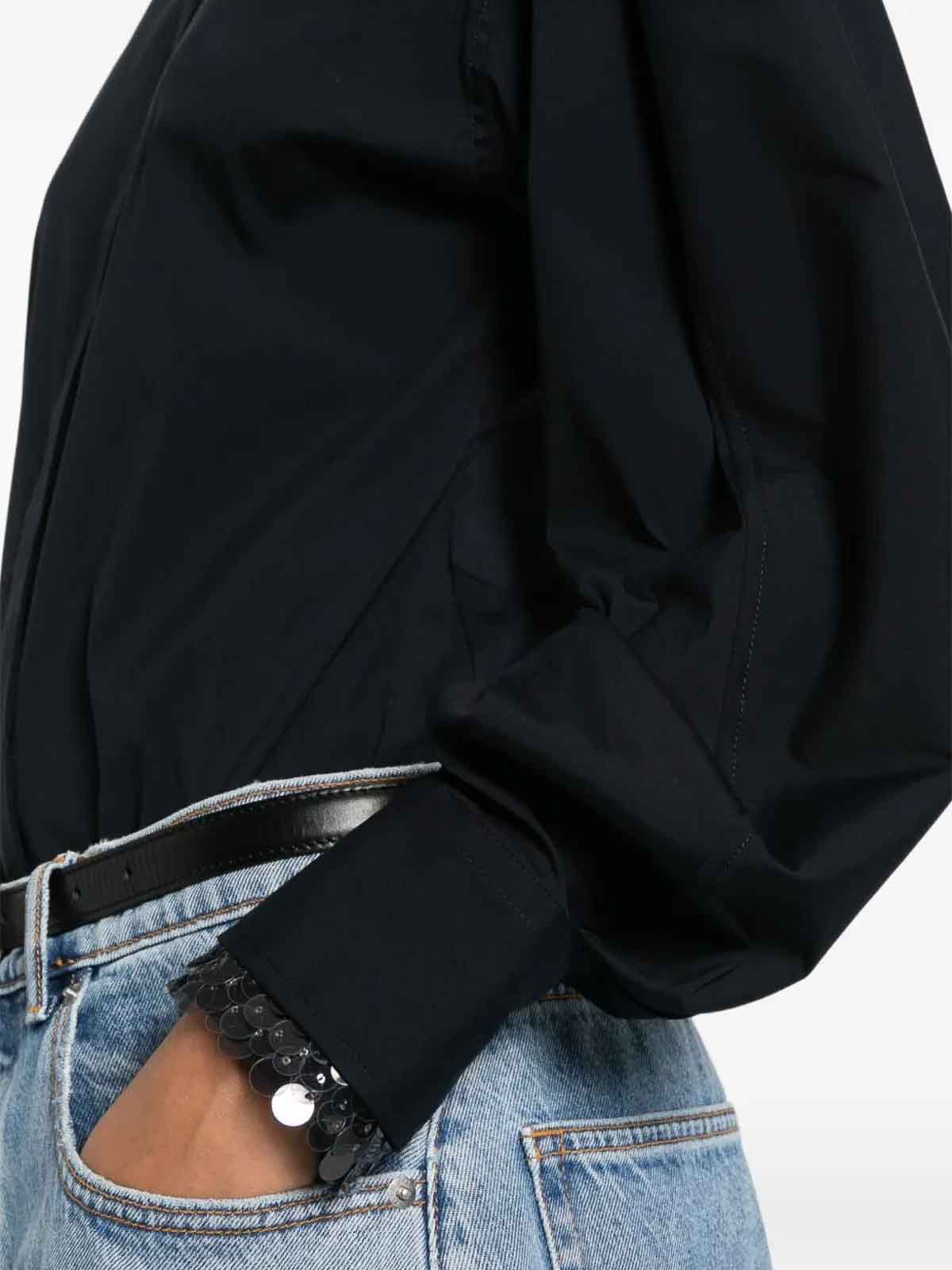 Damenhemd aus feinem Stoff, das sich durch eine elegante und raffinierte Linie auszeichnet. Die Farbe Cold Blue drückt den nüchternen und raffinierten Stil der Marke aus.