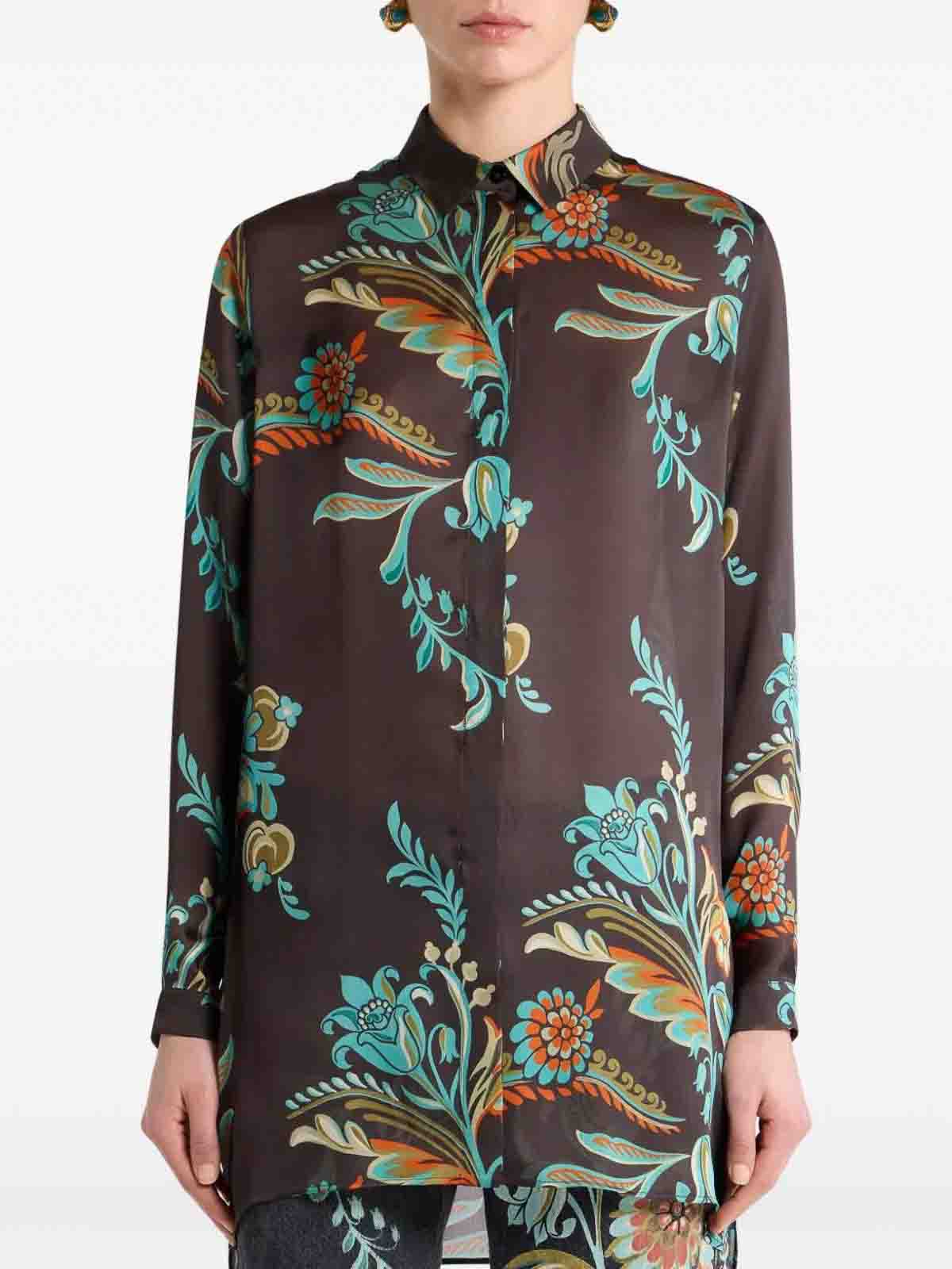 dunkles, florales Muster, lange Ärmel, Hemdkragen, Knopfverschluss, Allover-Print