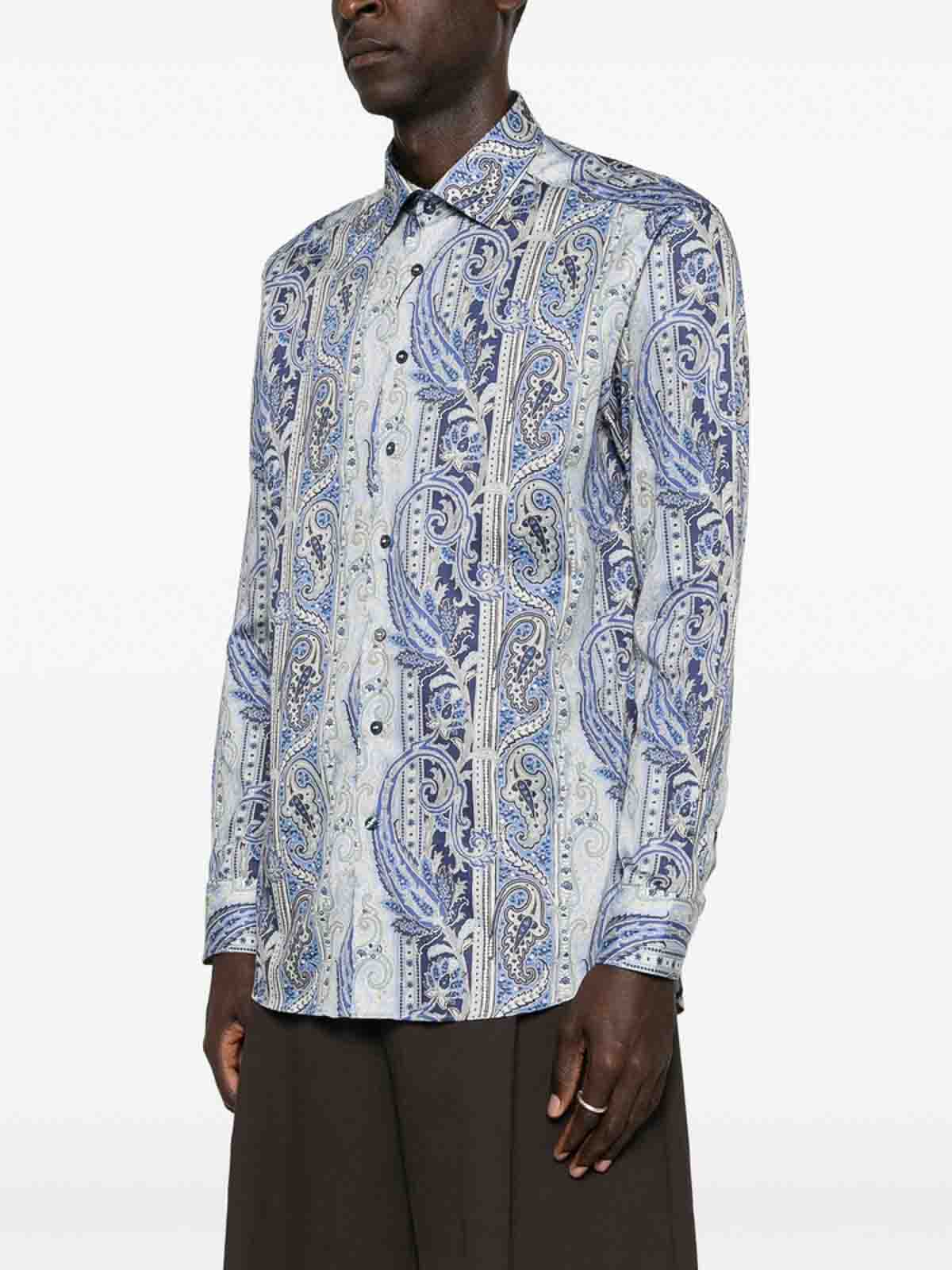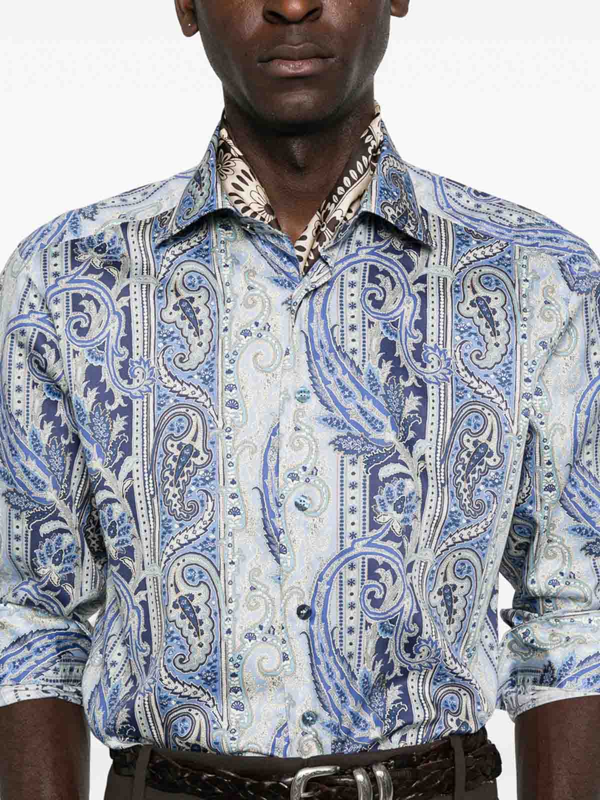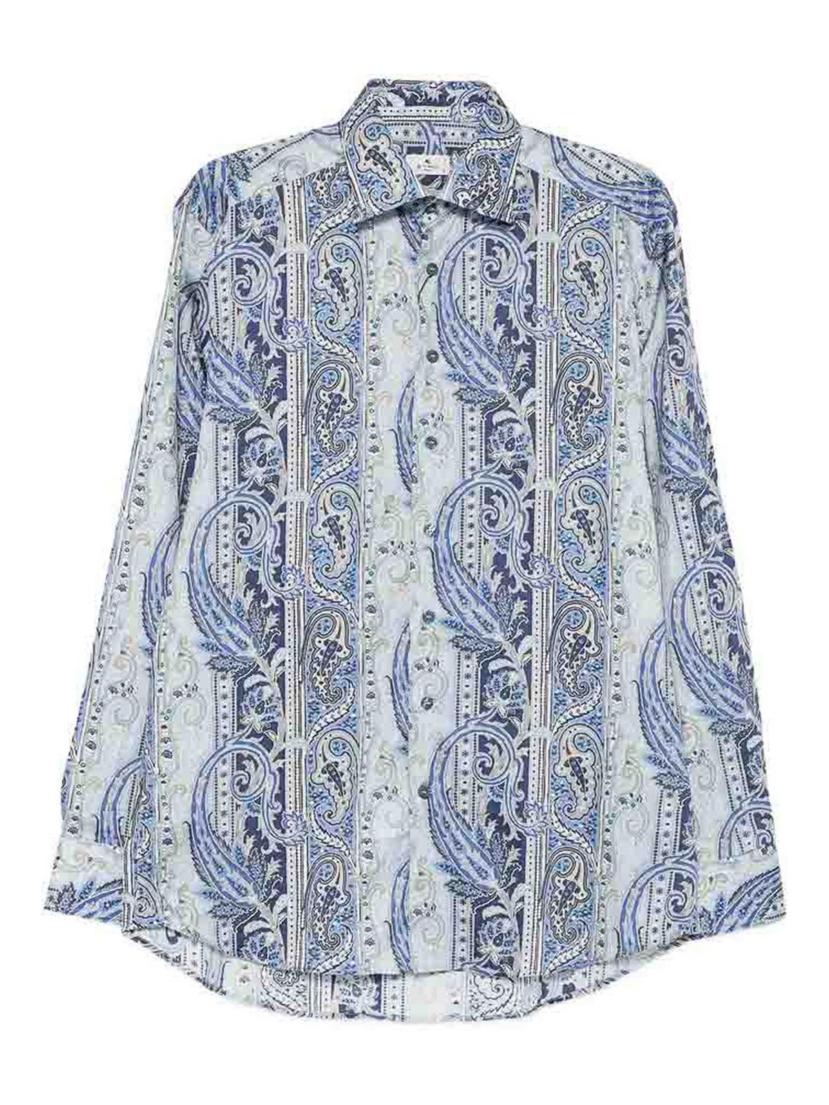 Blauer Paisley-Print, Knopfverschluss, lange Ärmel, geknöpfte Manschetten, klassischer Kragen