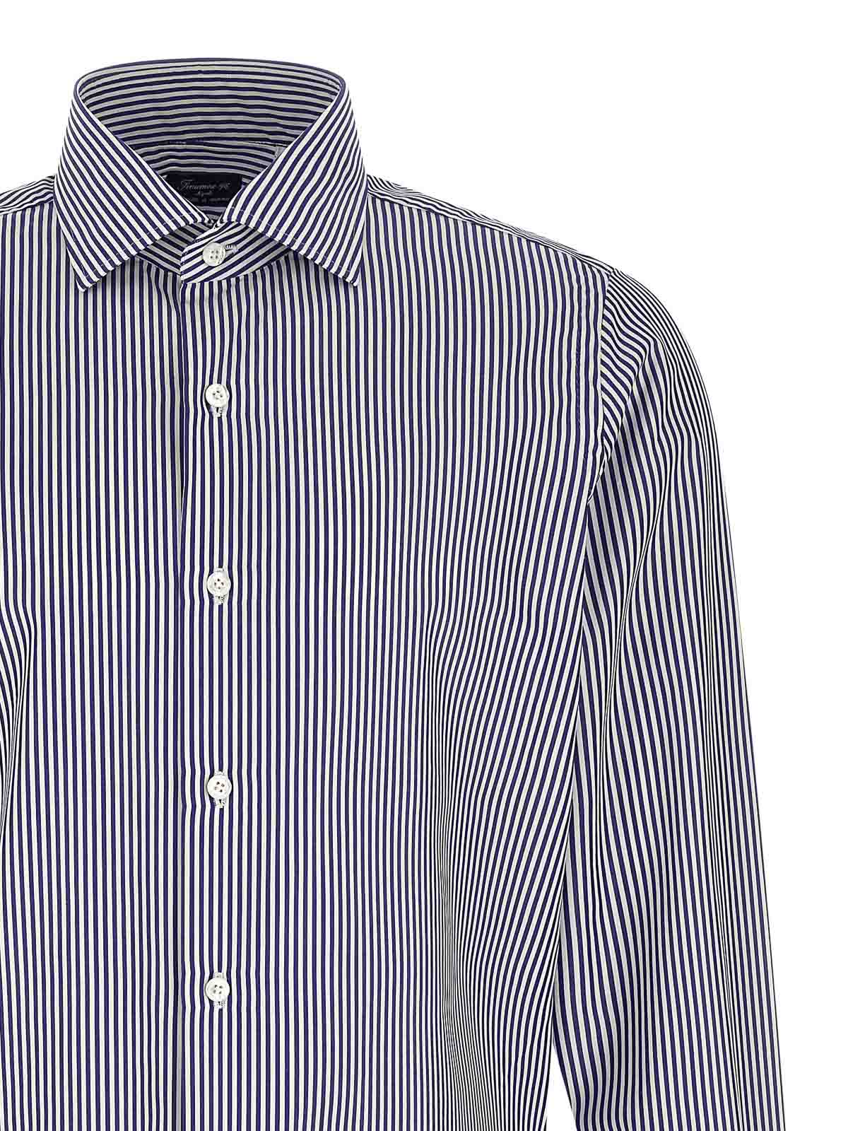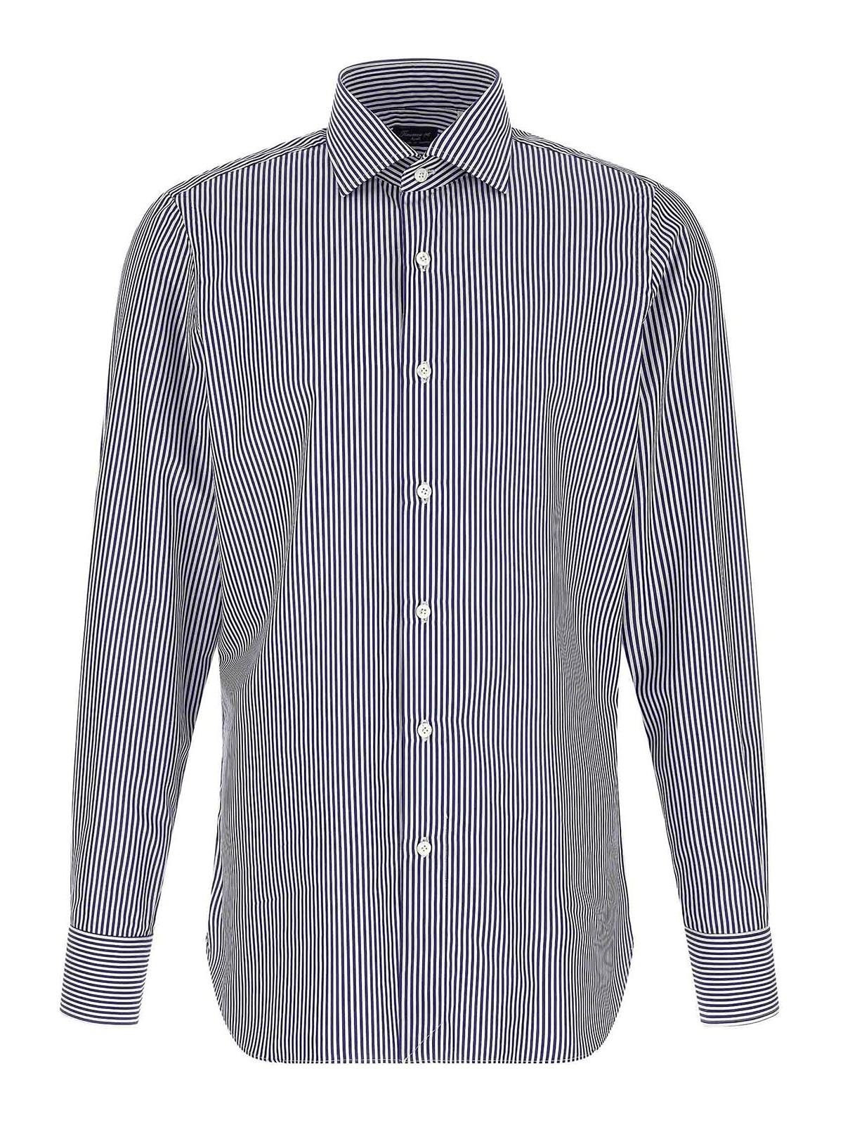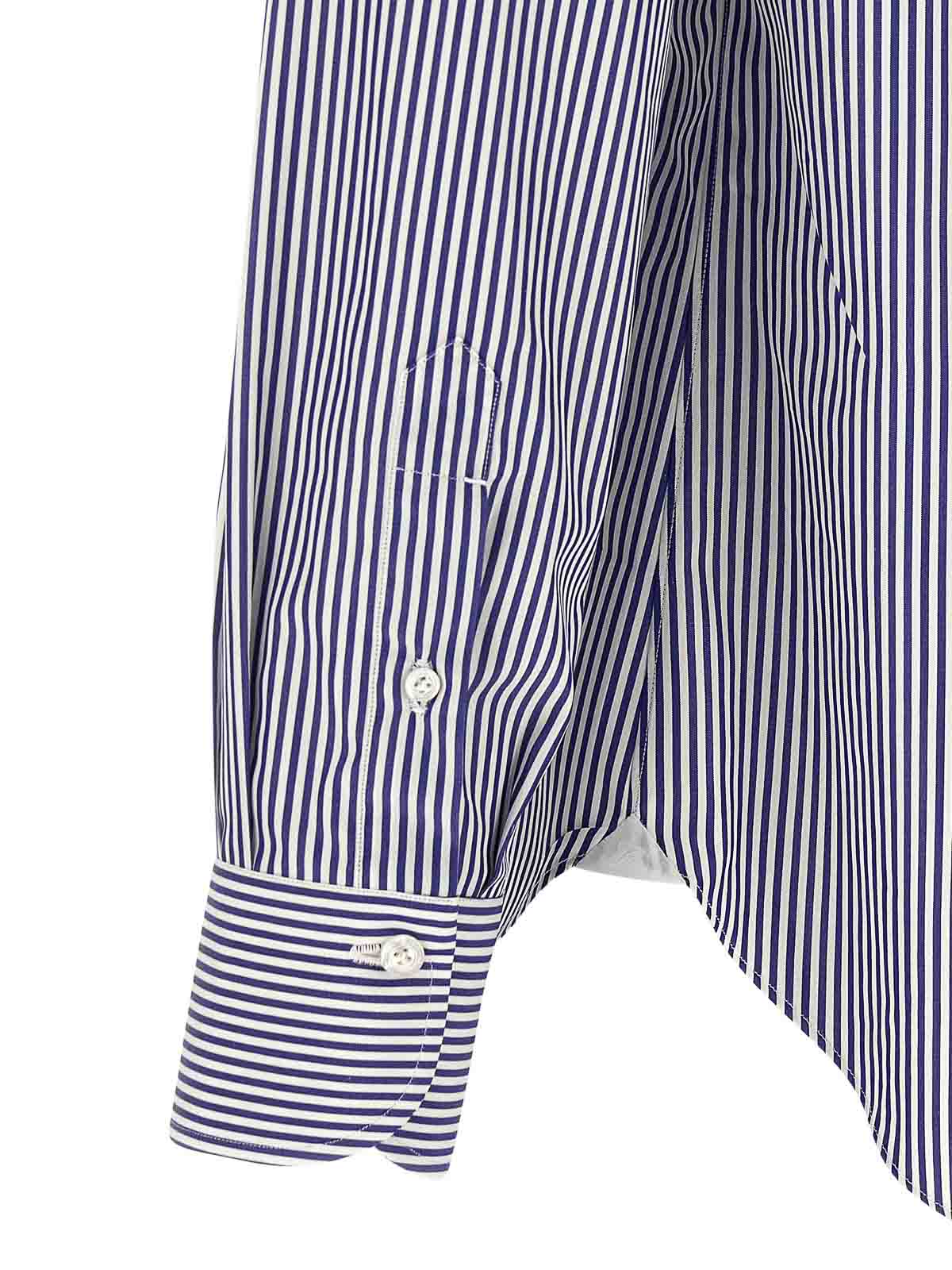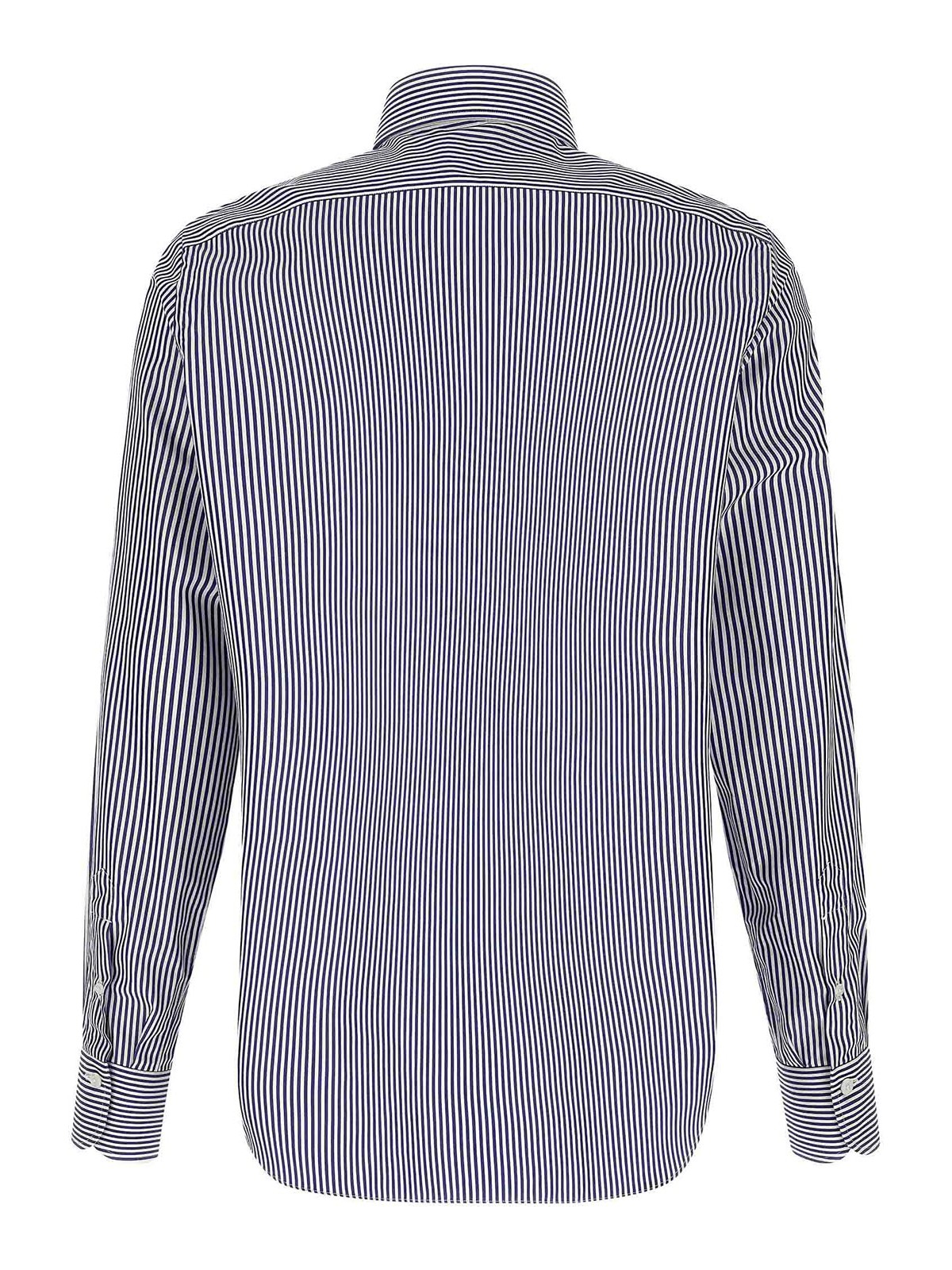 Napoli' gestreiftes Hemd aus Baumwollpopeline mit Knopfverschluss auf der Vorderseite, langen Manschettenärmeln und kontrastierendem Satin-Logodetail an den Seitenschlitzen.