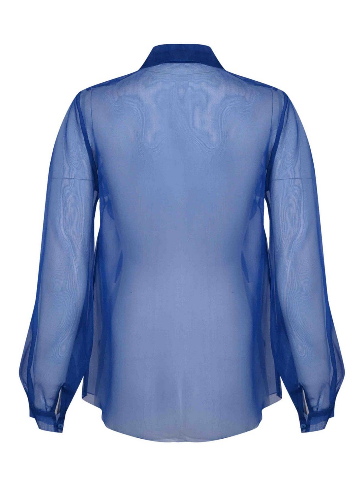 Damenhemd aus Seidenorganza, Hanita H Couture, Hemdmodell, Stoff: leichter und transparenter Seidenorganza, Muster: einfarbig, Ärmel: lang mit Manschette und weichem Volumen, Kragen: klassischer Kragen, Verschluss: Frontleiste mit Ton-in-Ton-Knöpfen, Taschen: nicht vorhanden, Details: Verarbeitung mit Rüschen auf der Vorderseite für einen szenografischen und femininen Effekt, unfühlbarer und leuchtender Stoff, der die Silhouette betont, fließend Konstruktion mit einem leichten Spiel von Transparenzen, abgerundeter Saum, elegantes und raffiniertes Kleidungsstück, ideal für besondere Anlässe oder anspruchsvolle Abende Optik, gefüttert: nein, Passform: weich