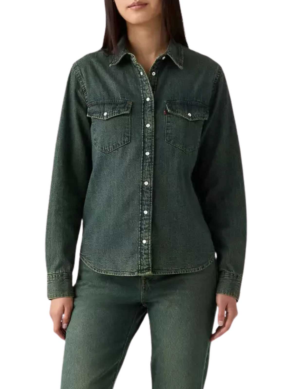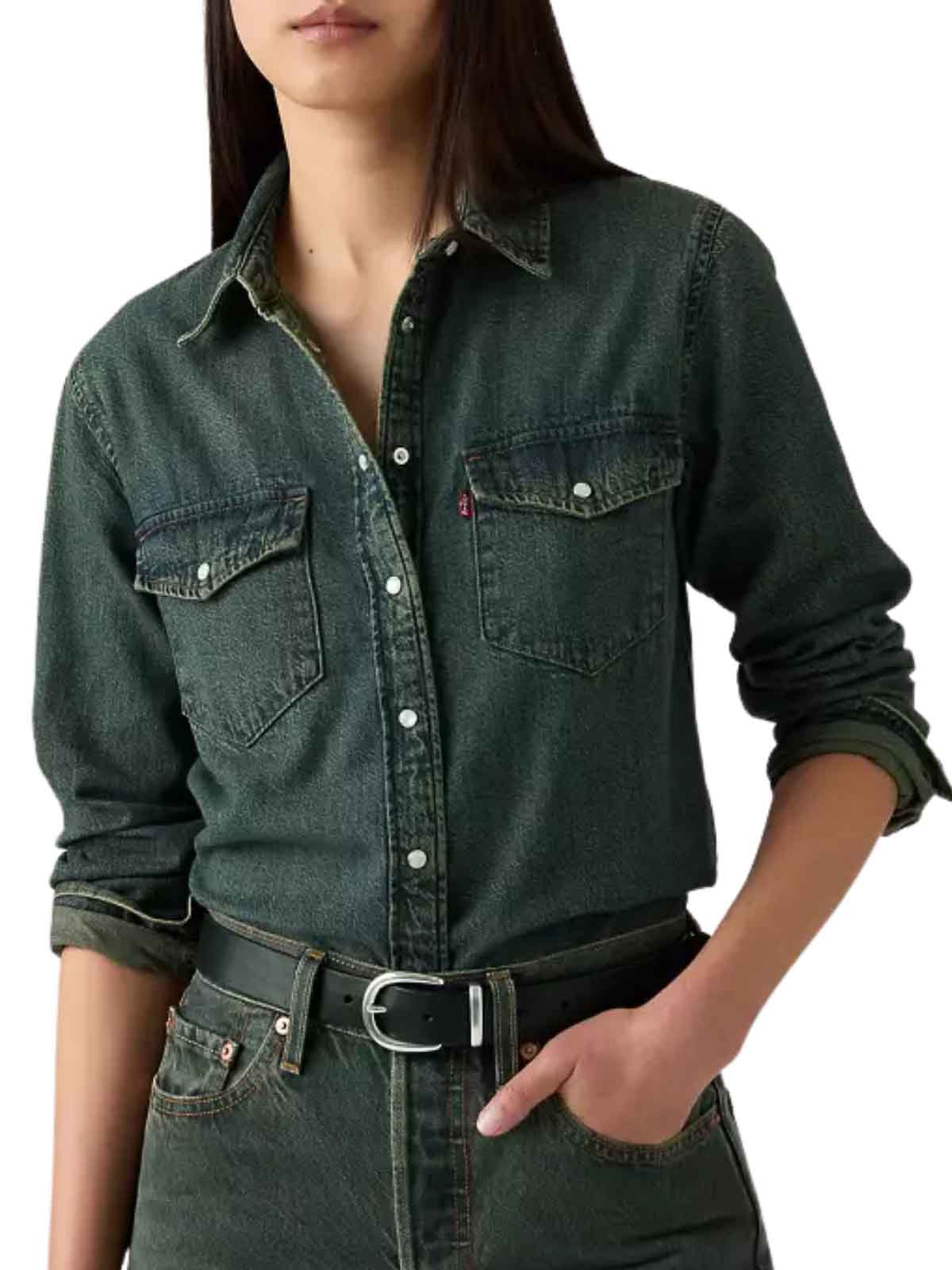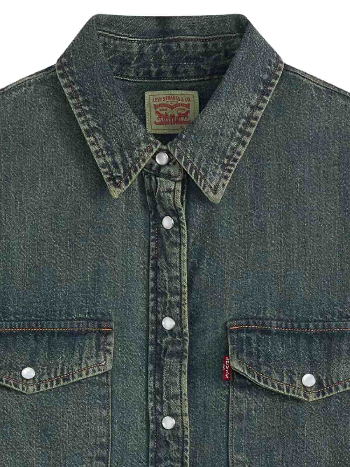 Der Western-Stil ist ein grundlegender Bestandteil unserer Tradition und Sie sollten ihn auch zu einem Teil Ihrer machen. Entworfen mit der berühmten spitzen Tasche und dem Carr. Unser unermüdliches ikonisches Westernhemd ist bereit für die Ewigkeit und verbessert sich sogar im Laufe der Zeit. Langes Denim-Westernhemd mit originalen Westerntaschen und Vorderseite mit Druckknöpfen, Symbol der rustikalen amerikanischen Kultur, geschwungener Saum des Hemdes aus Mischung und Hanf. Wir haben dieses Kleidungsstück in Post Fiber, Industrial Model Ventures Top gefertigt, blau Passform: Standardausführung