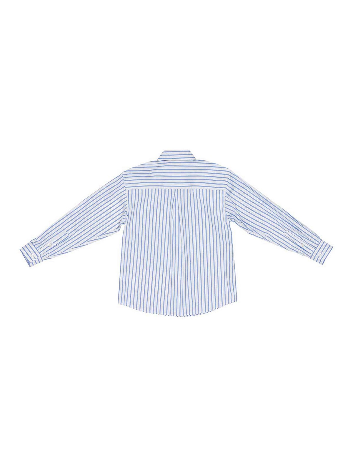 Gestreiftes Hemd mit hellblauem Streifenmuster, Brusttasche, langen geknöpften Ärmeln und geknöpften Säumen