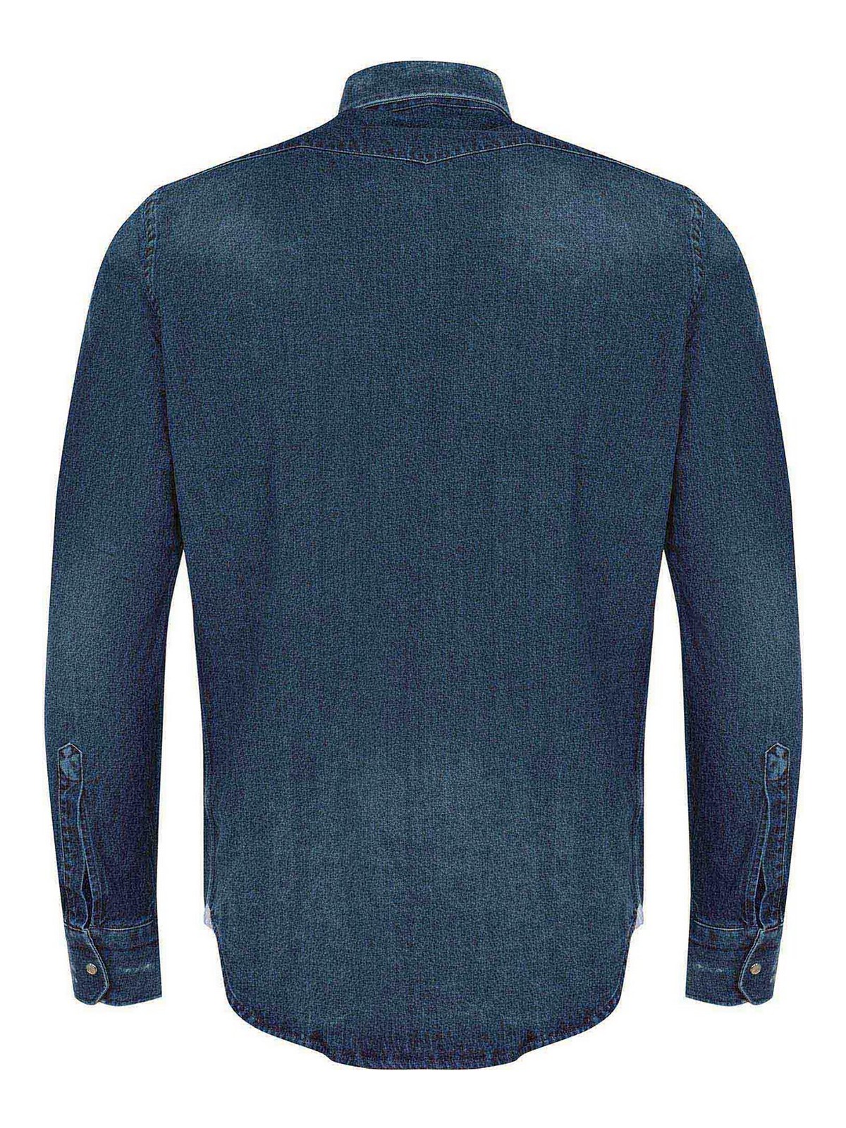 Sartorio Hemd aus mittelblauem Denim, Hemdkragen, Knopfverschluss vorne, lange Ärmel. Manschetten mit Knöpfen, Pattentaschen mit Knöpfen auf der Brust, 100% Baumwolle, hergestellt in Italien