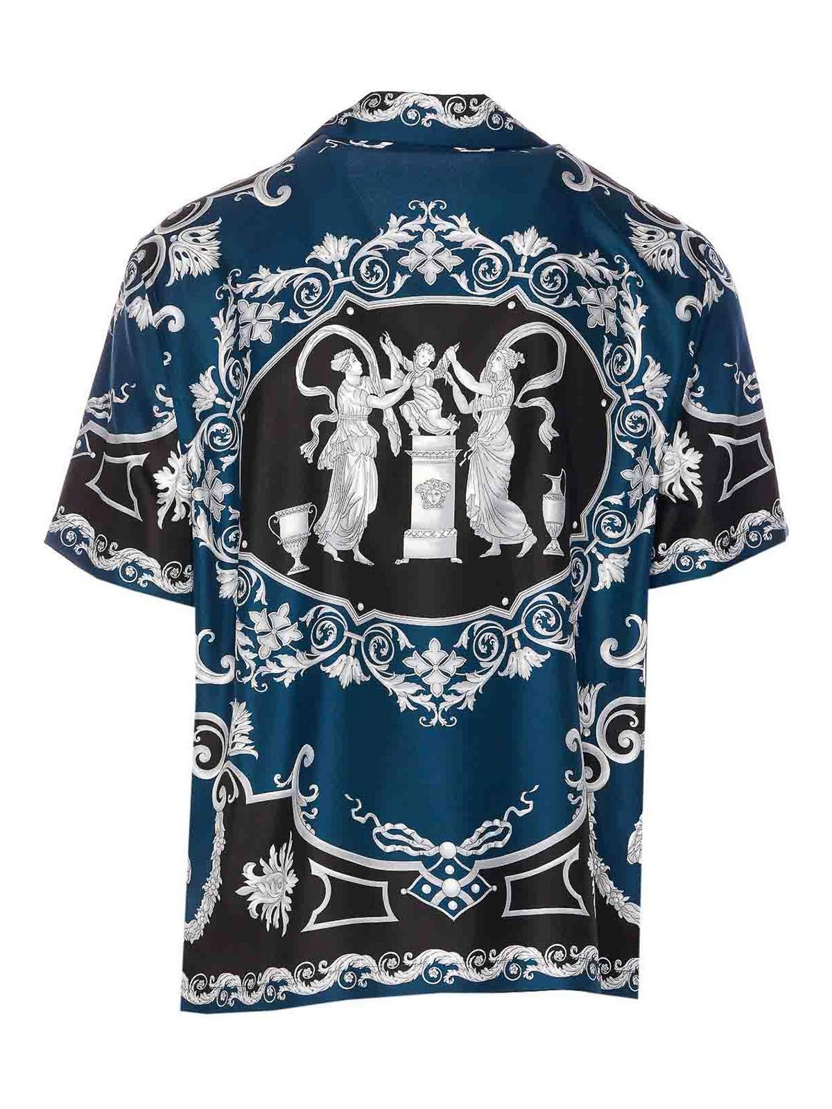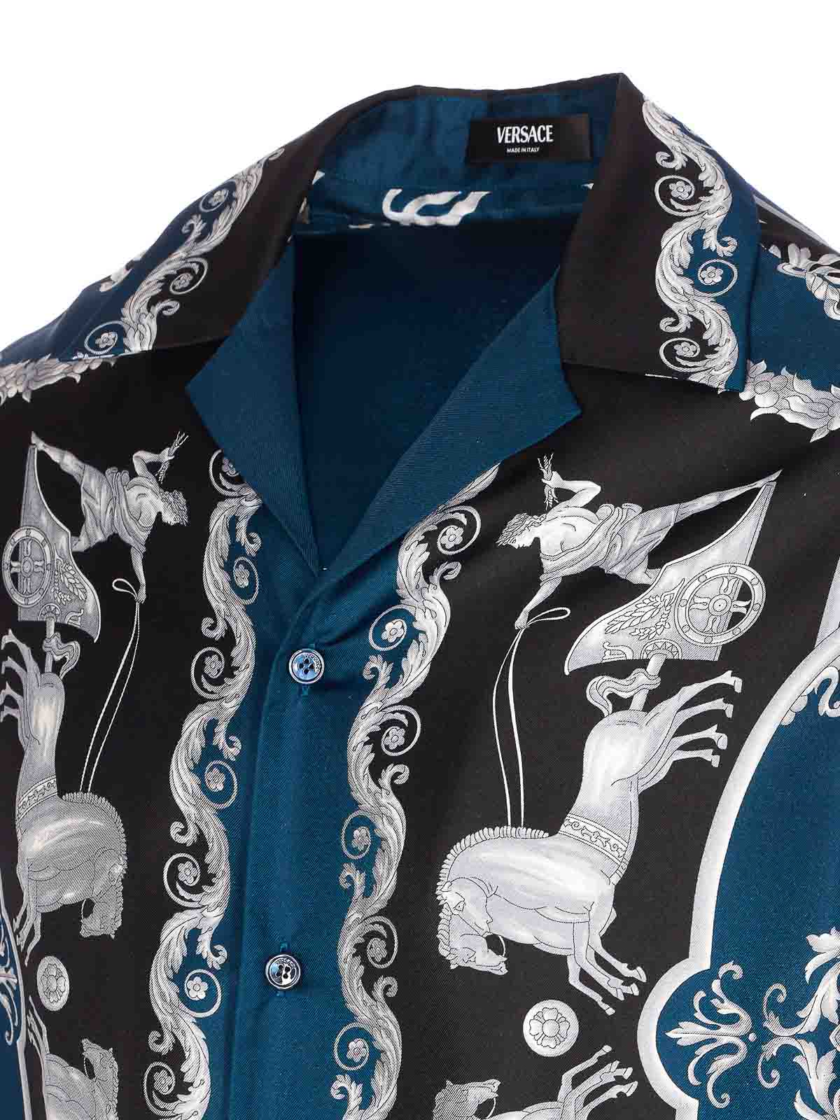 Blaues informelles Hemd von Versace mit vorderem Knopfverschluss, normalem Kragen, kurzen Ärmeln, bedruckt