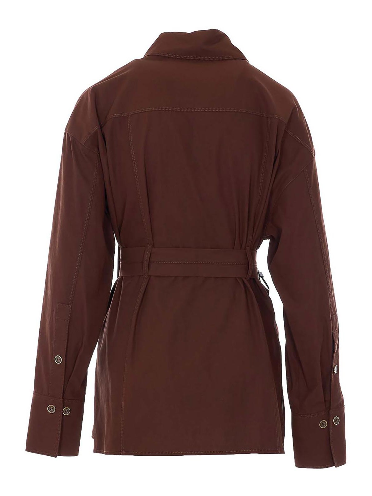 Pinkobraunes Cherylhemd mit vorderem Knopfverschluss, normalem Kragen, langen Ärmeln, Knöpfen an den Manschetten, Gürtel an der Taille, geteiltes Detail an der Seite