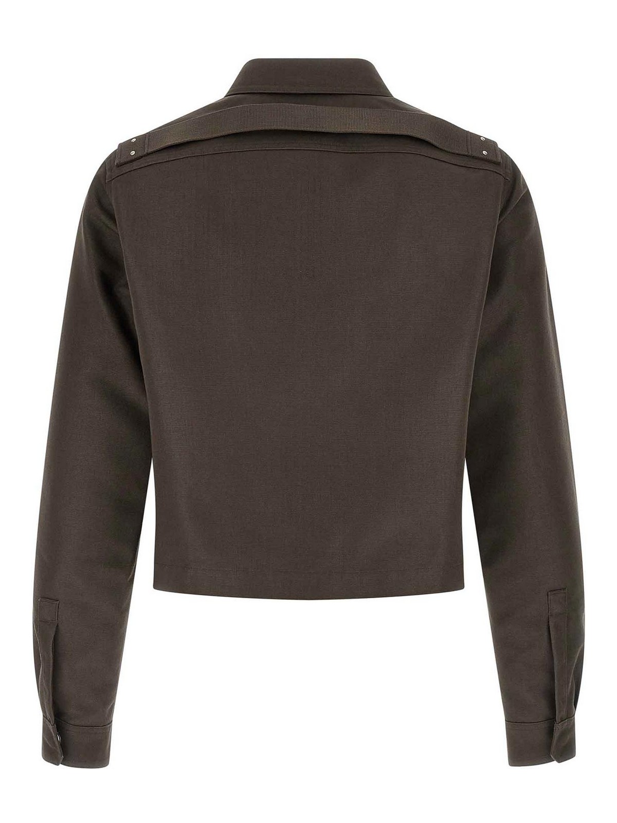 Tour Alice-Hemd aus starrem Baumwollmischgewebe im Crop-Stil, Druckknopfverschluss auf der Vorderseite, Taschen, lange Manschettenärmel und farblich abgestimmtes Baumwollgewebe auf der Rückseite.