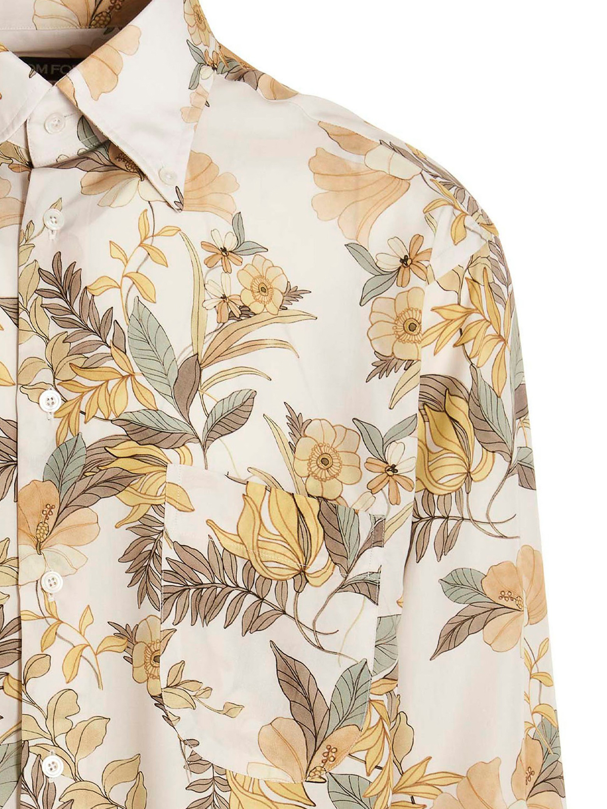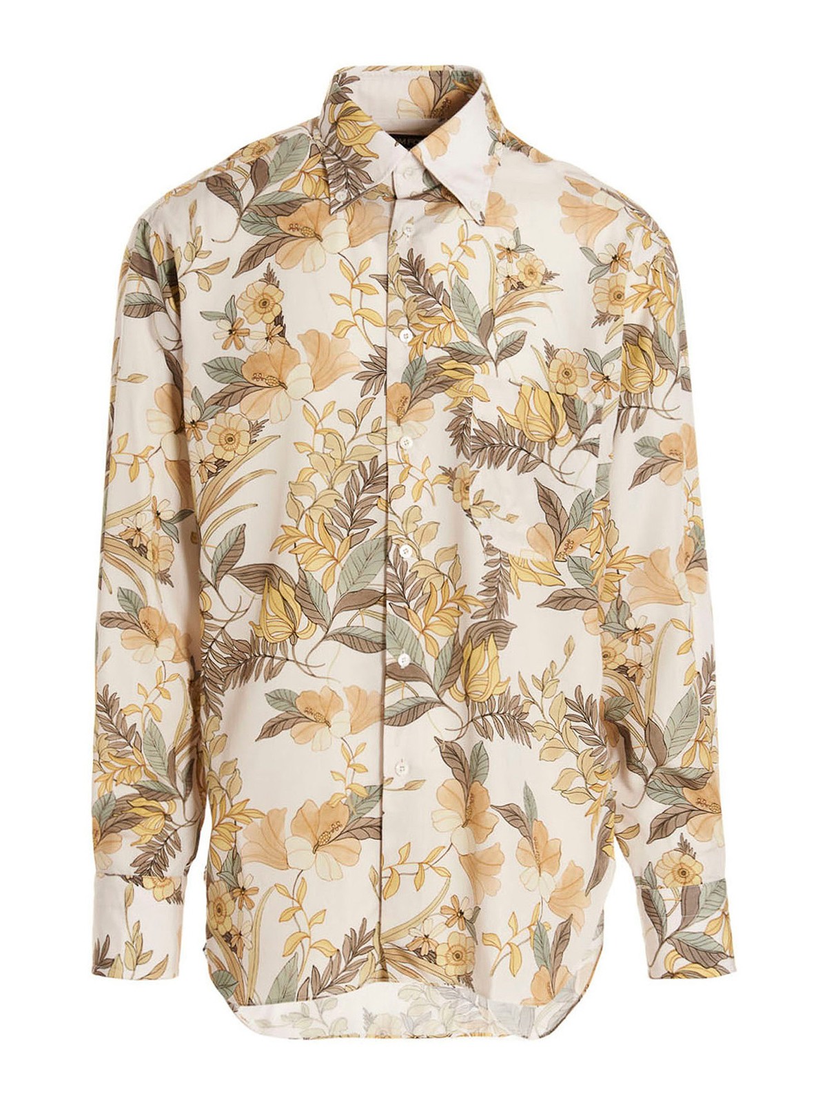 Hemd aus Lyocell und Cupro mit Allover-Vintage-Blumendruck, Tasche, Knopfverschluss und langen Ärmeln mit Bündchen.