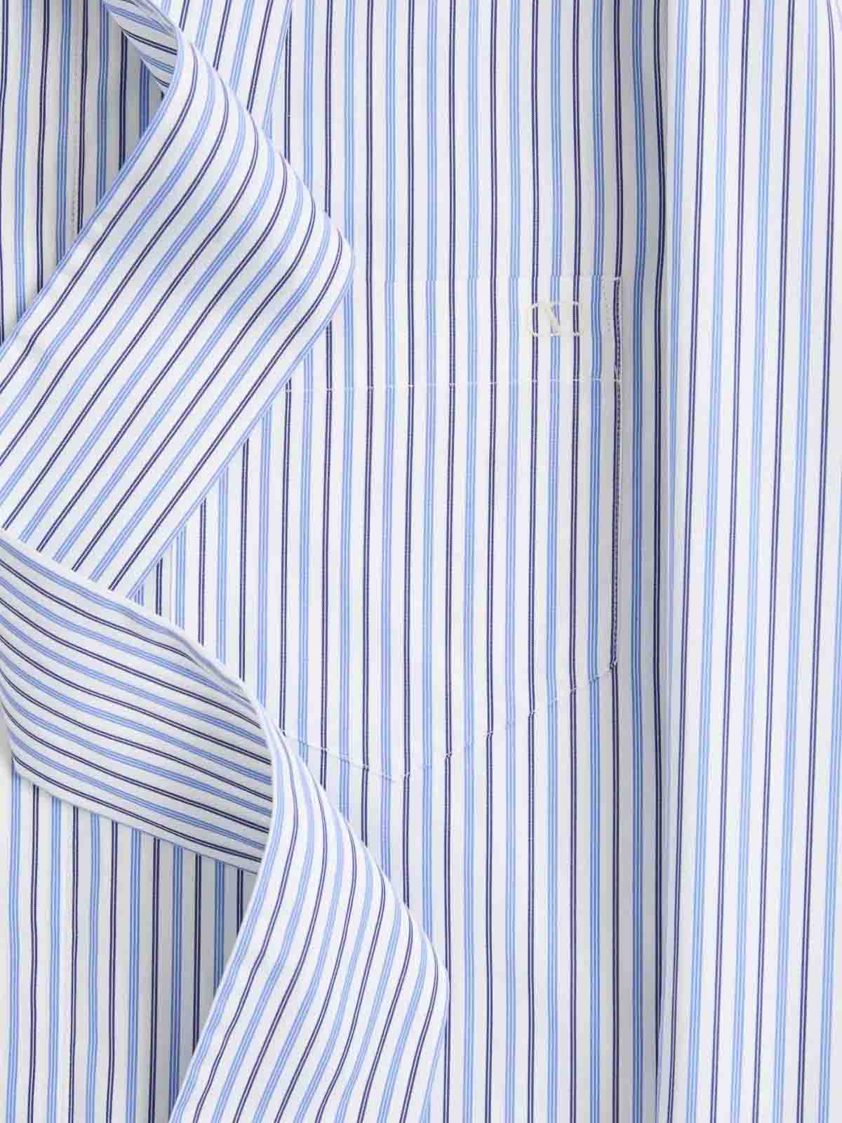 Gestreiftes Herrenhemd aus hochwertigem Stoff, gekennzeichnet durch das VLogo Signature-Motiv, das das Design mit einem ikonischen Detail bereichert. Die Farbkombination Ivory Light Blue Blue verleiht eine moderne und unverwechselbare Eleganz.