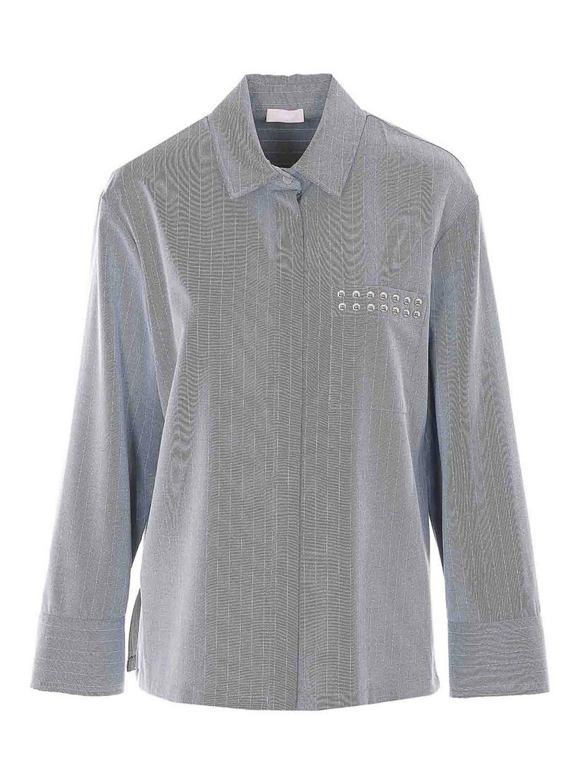 Graues gestreiftes Hemd von Liu Jo, normaler Kragen, lange Ärmel, Tasche mit applizierten Nietendetails