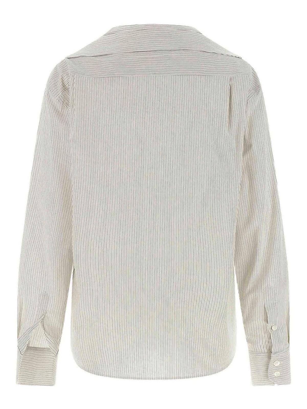 Gestreiftes Hemd aus Baumwollpopeline, Trompe-l'oeil-Kragen mit offenem Saum, Knopfverschluss aus Perlmutt auf der Vorderseite, lange Manschettenärmel, abgerundeter Saum, „weiße Stichlinie“ auf der Rückseite.
