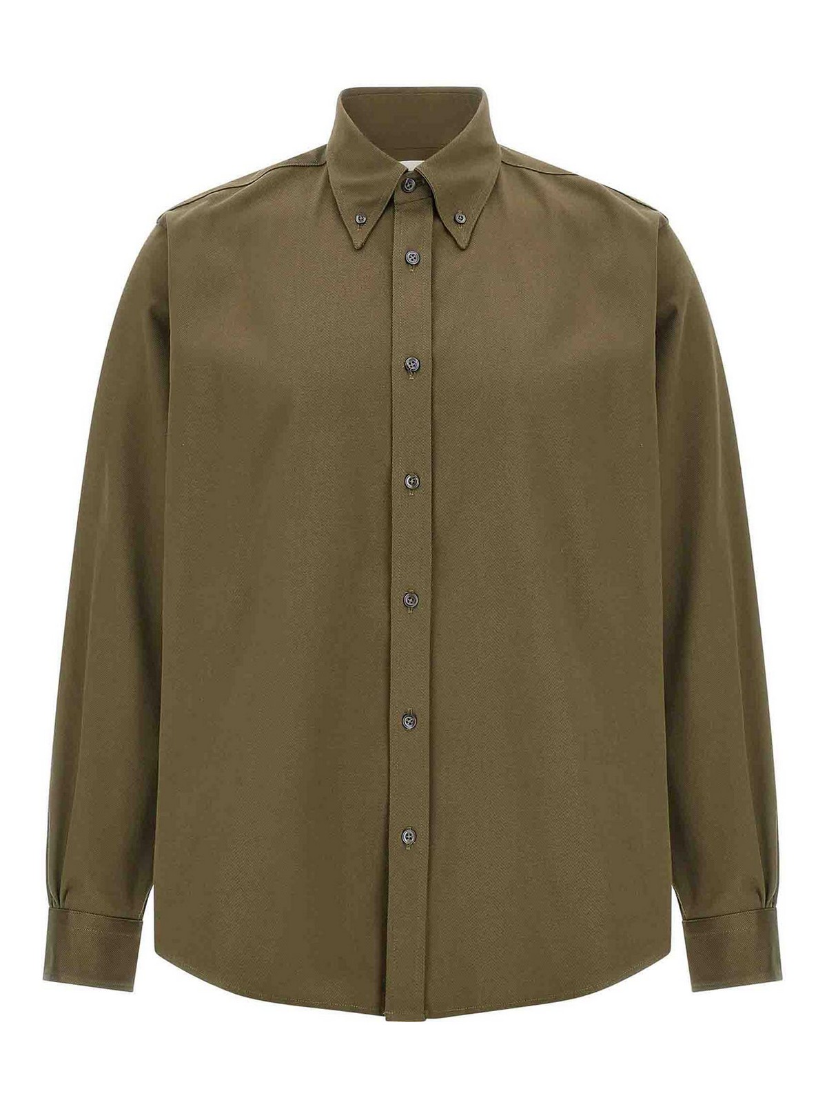 Schwerer Knopf, Hemd mit Knöpfen, langen Manschettenärmeln und abgesenkten Schultern